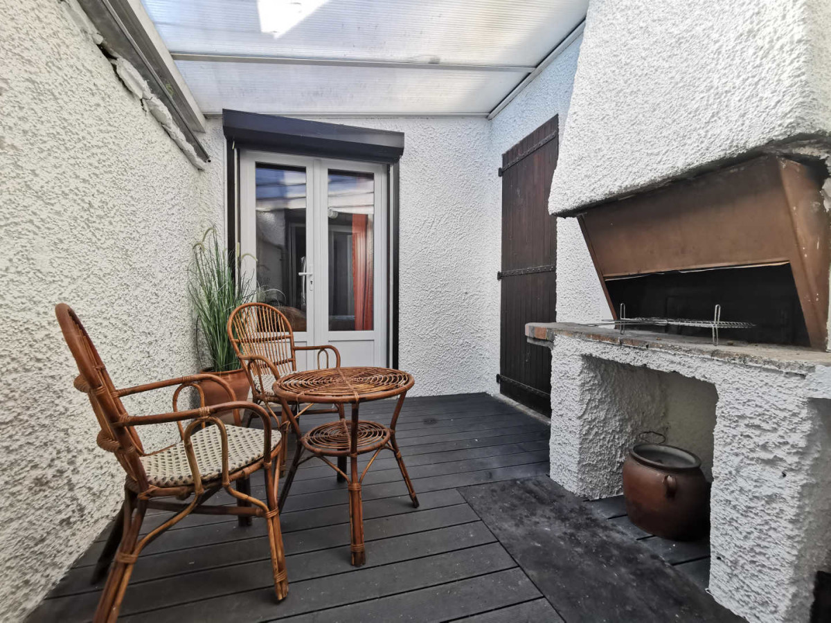 La cuisine donne, elle, sur un patio intérieur couvert où se situe le barbecue, dont les fumées s’évacuent à l’extérieur grâce à la cheminée.