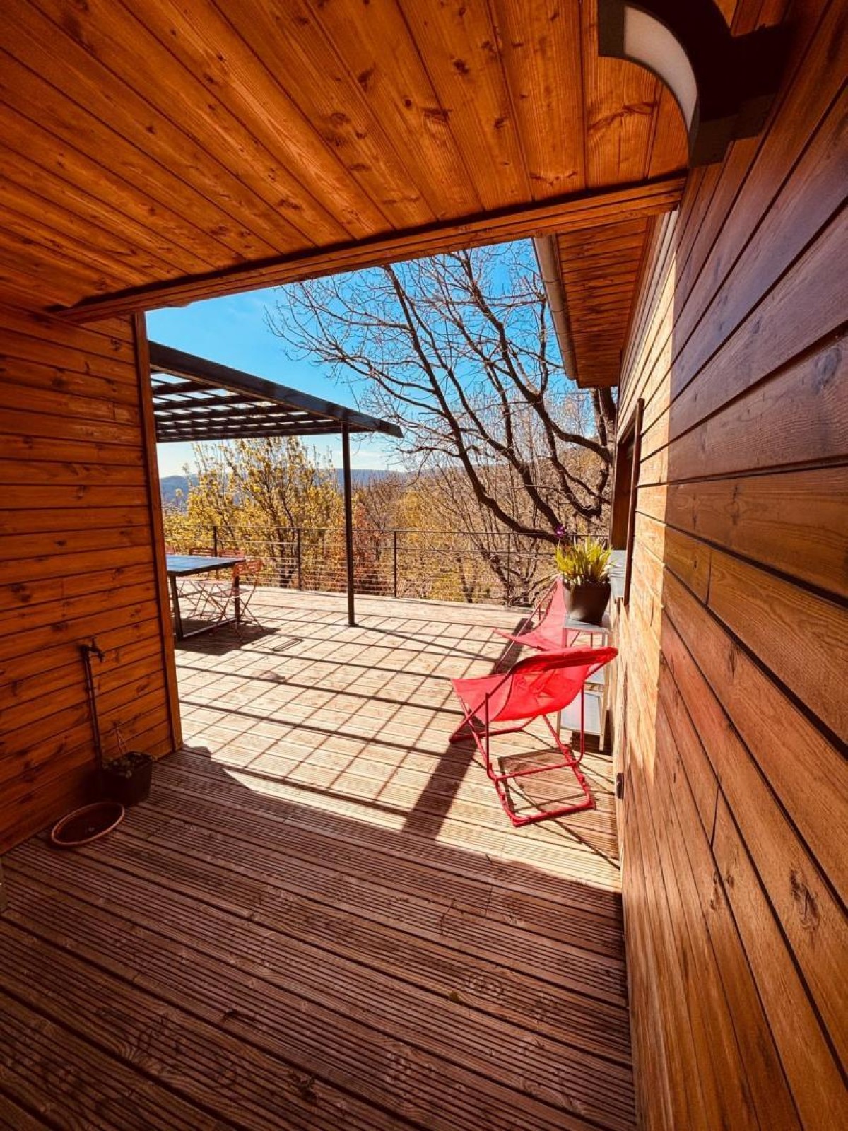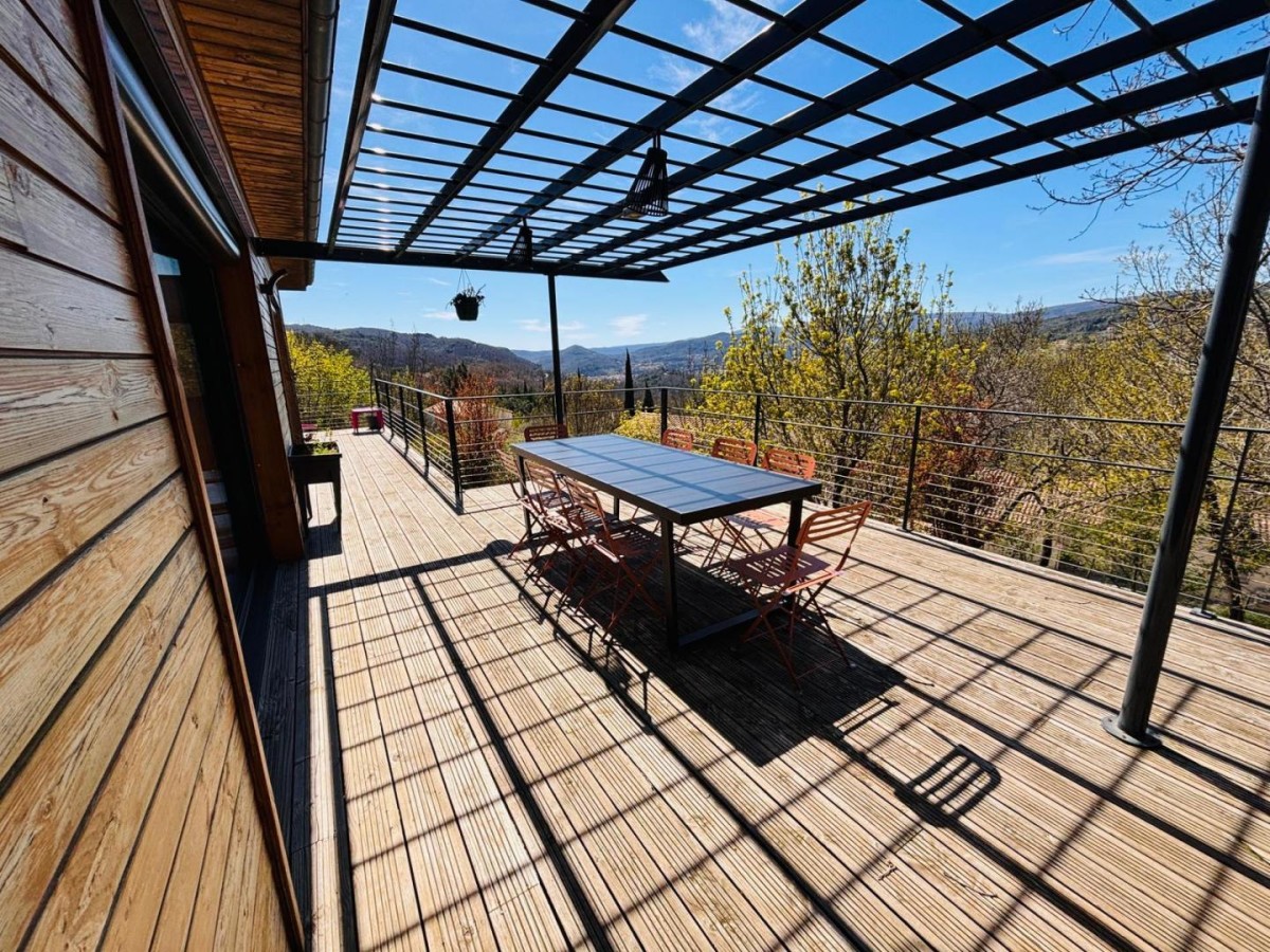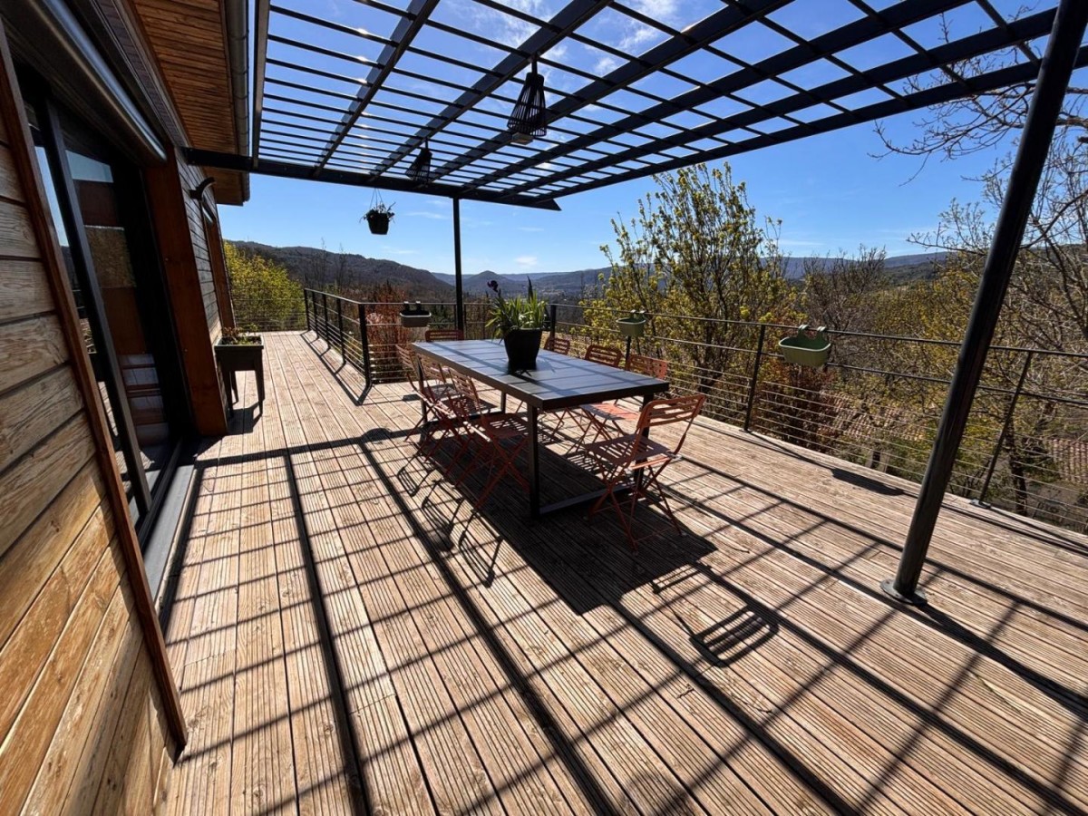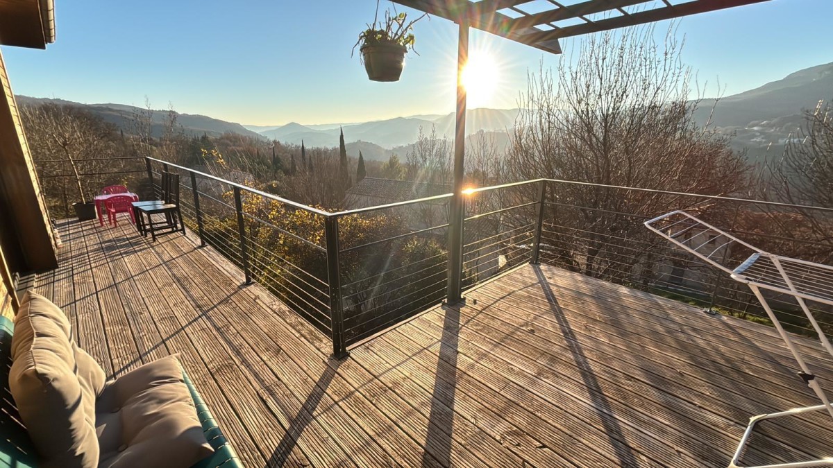 – Une belle terrasse en bois avec salon de jardin et une superbe vue sur les environs ;