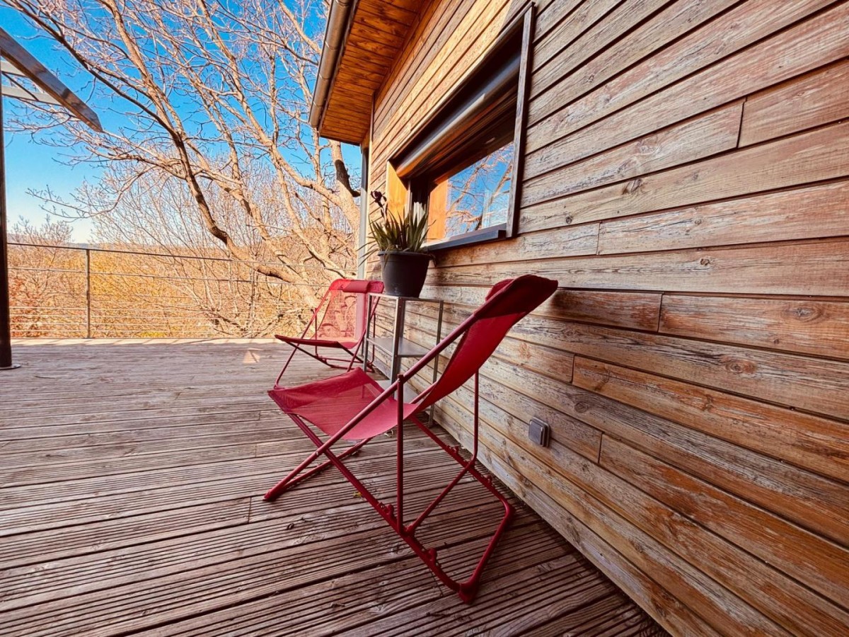 Venez séjourner dans la Cabane de Vinas, un gîte moderne et décoré avec soin pour 8 personnes conçu entièrement en bois, avec un grand séjour, trois belles chambres et une terrasse qui vous permettra de profiter du soleil de l’Hérault en toute quiétude !