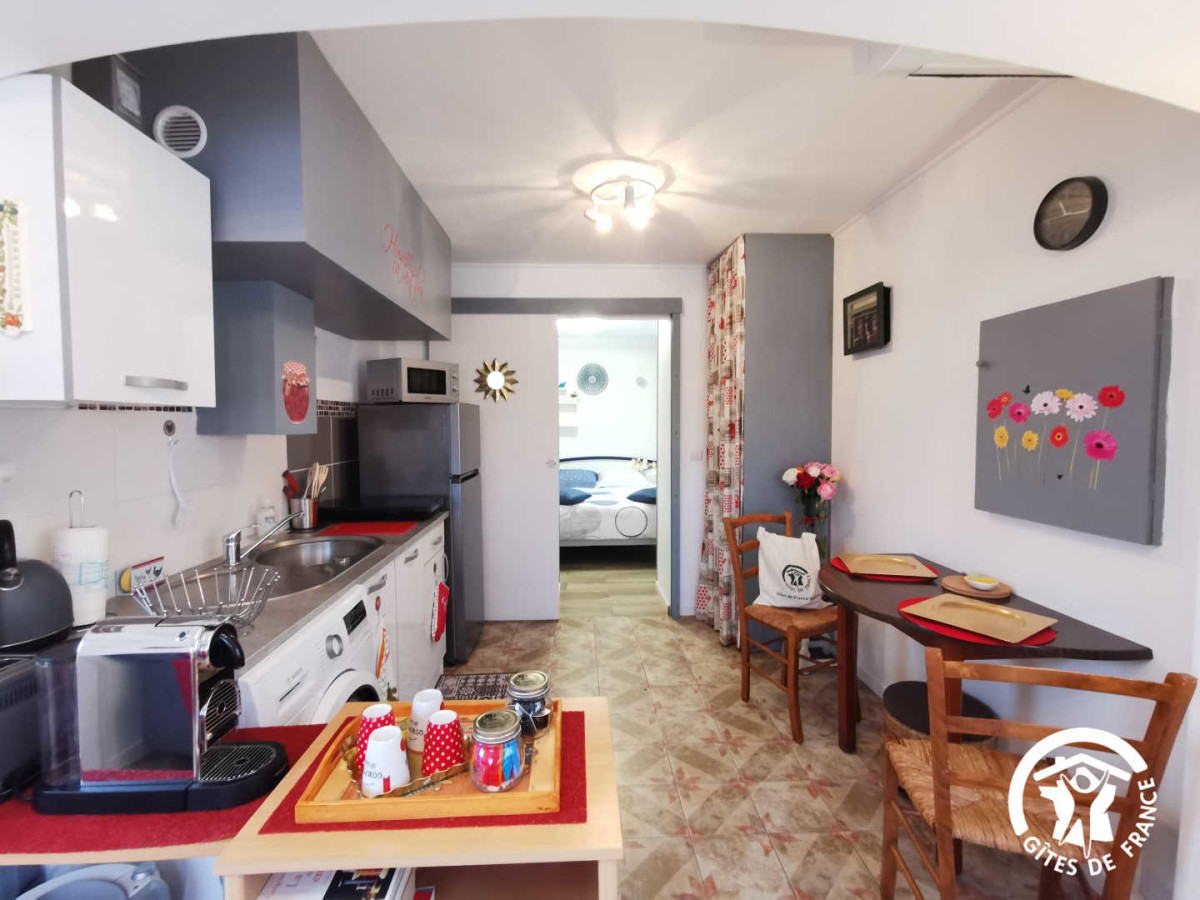 Au calme, dans une impasse résidentielle et privée, ce petit cocon pour 2 personnes dispose d’un coin cuisine ouvert sur le salon. Vous trouverez une chambre avec un lit 140×190 donnant accès à une belle salle d’eau avec douche à l’italienne et wc.
