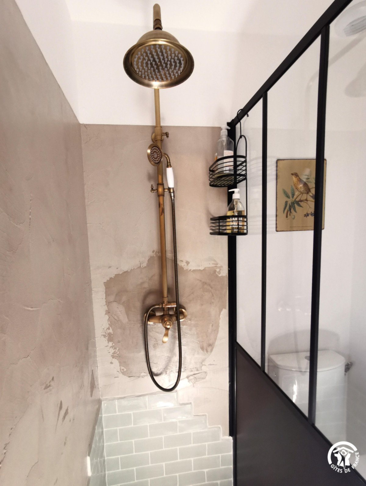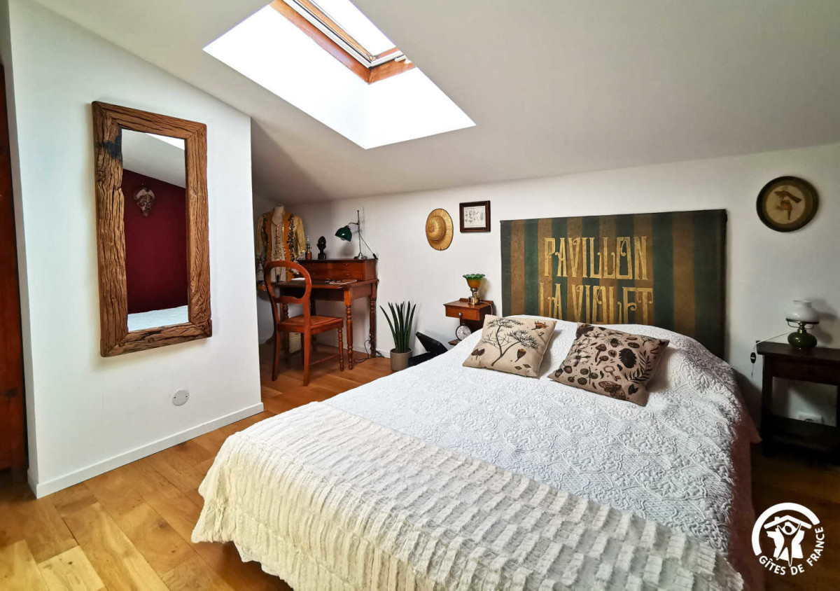 La spacieuse suite est très lumineuse grâce à son puit de lumière. Elle est équipée d’un grand lit double confortable afin que vous puissez vous reposer correctement. Vous y trouverez également un écritoire ancien et d’une salle de bain avec une douche à l’italienne toute équipée (sèche-cheveux à disposition).