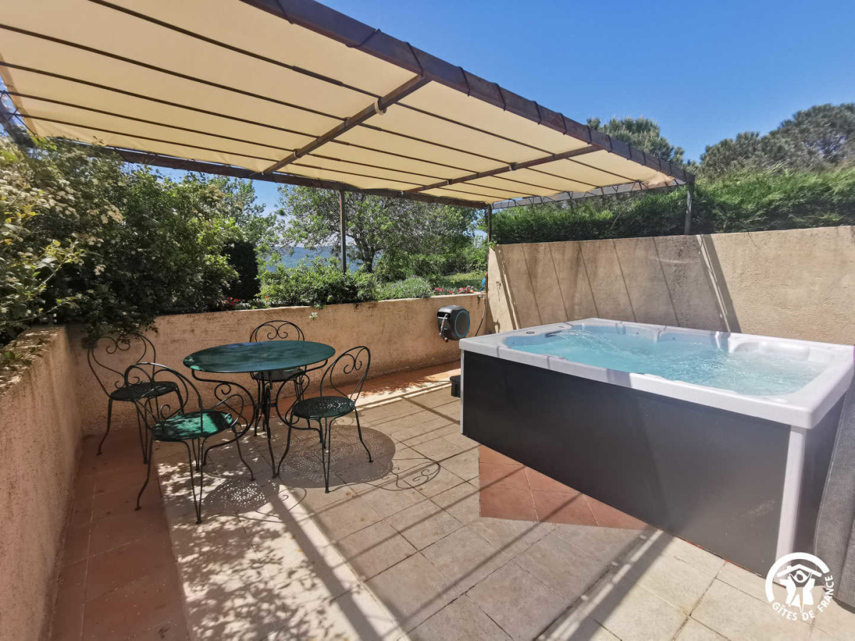 A l’extérieur, vous profiterez d’une terrasse avec son Spa privatif extérieur (accessible de mai à octobre) et un salon de jardin sans vis-à-vis.