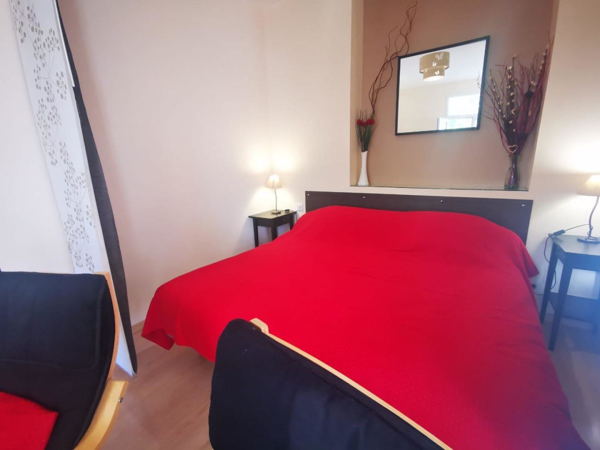 Dans une vaste cour (1 600 m²) et un jardin arboré clos (4 400 m²) partagés avec les autres occupants du domaine et l’appartement des propriétaires (présence de 3 autres gîtes), vous logerez dans un gîte de 37 m² disposant de deux portes-fenêtres qui ouvrent sur une terrasse ombragée partagée avec un autre logement (espace bien délimité de 30 m2 pour votre logement).