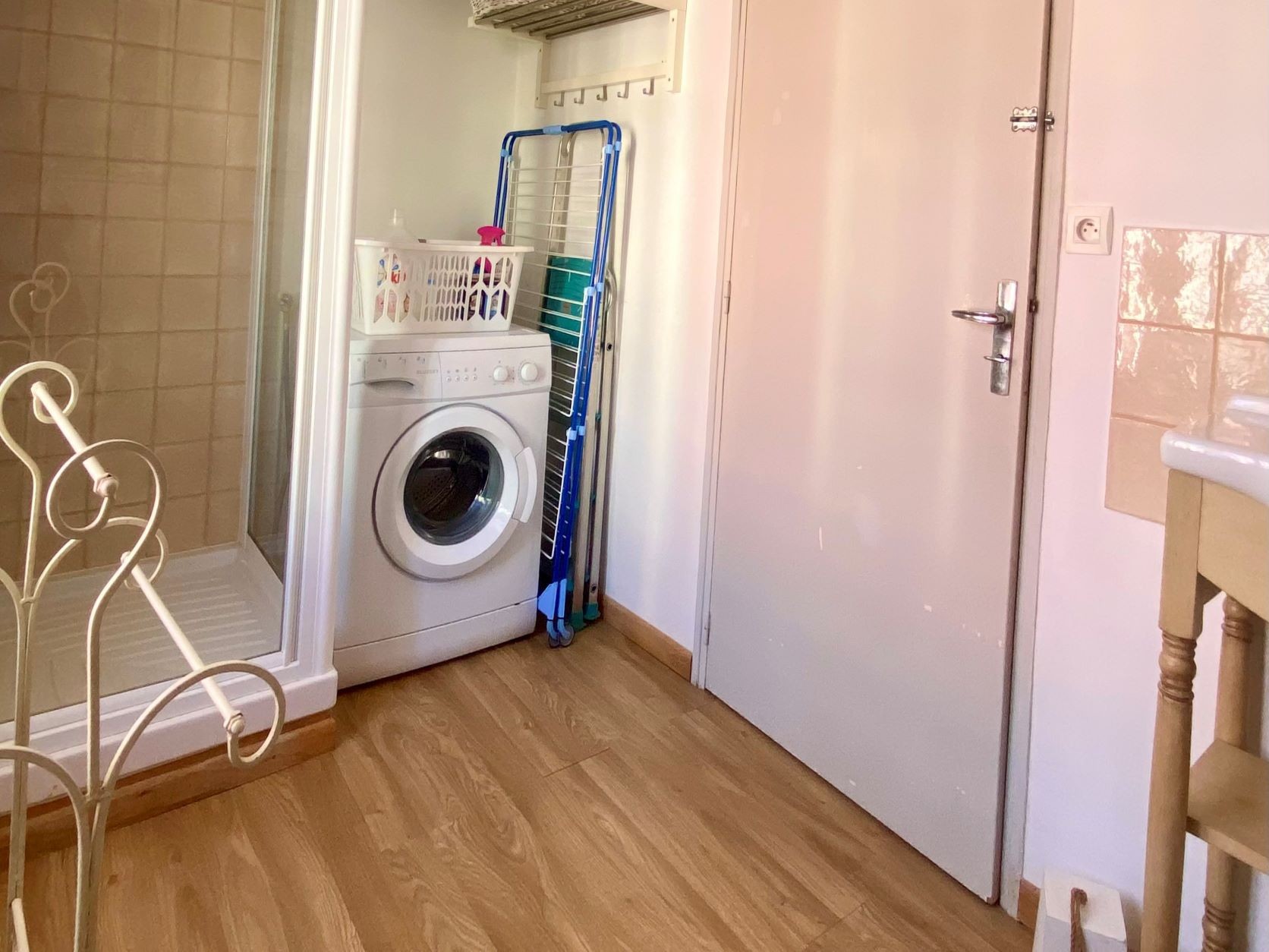 En entrant vous serez accueilli par une belle pièce de vie lumineuse avec une touche cocooning , un coin cuisine équipée (four, lave-vaisselle, combiné/ réfrigérateur),un coin repas avec une grande table et un espace détente avec 2 canapés.