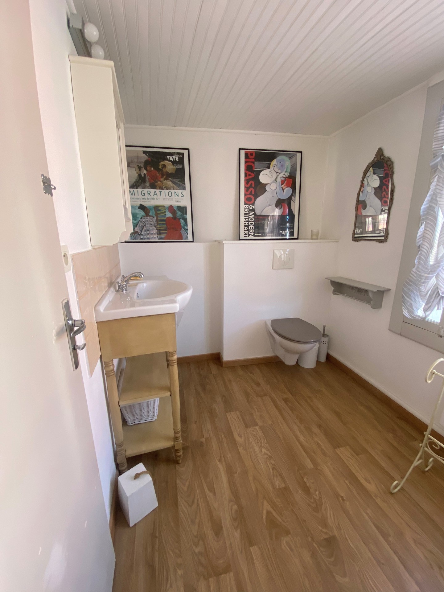 Le 2°et dernier étage dispose d’une chambre avec 2 lits en 90 cm et une salle d’eau+ WC attenante. Petit salon avec un canapé convertible en 140 cm