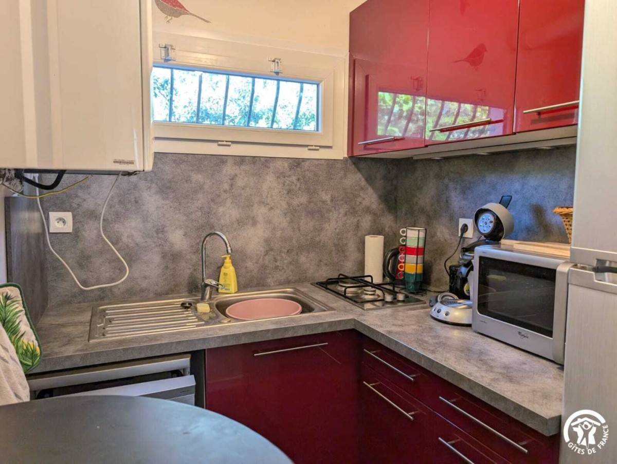 Conçue pour accueillir 4 personnes, cette maison offre une ambiance simple et fonctionnelle, parfaitement adaptée à des vacances en famille. Au rez-de-chaussée, vous disposez d’une cuisine séparée équipée de deux plaques de cuisson, d’un micro-onde, d’une cafetière Senseo, d’un lave-vaisselle, d’un réfrigérateur et d’un congélateur. Le salon, également situé au rez-de-chaussée, propose un canapé, une table basse et une table à manger pliante, permettant d’adapter l’espace selon vos besoins. Une salle d’eau avec douche et vasque ainsi qu’un WC indépendant complètent ce niveau.