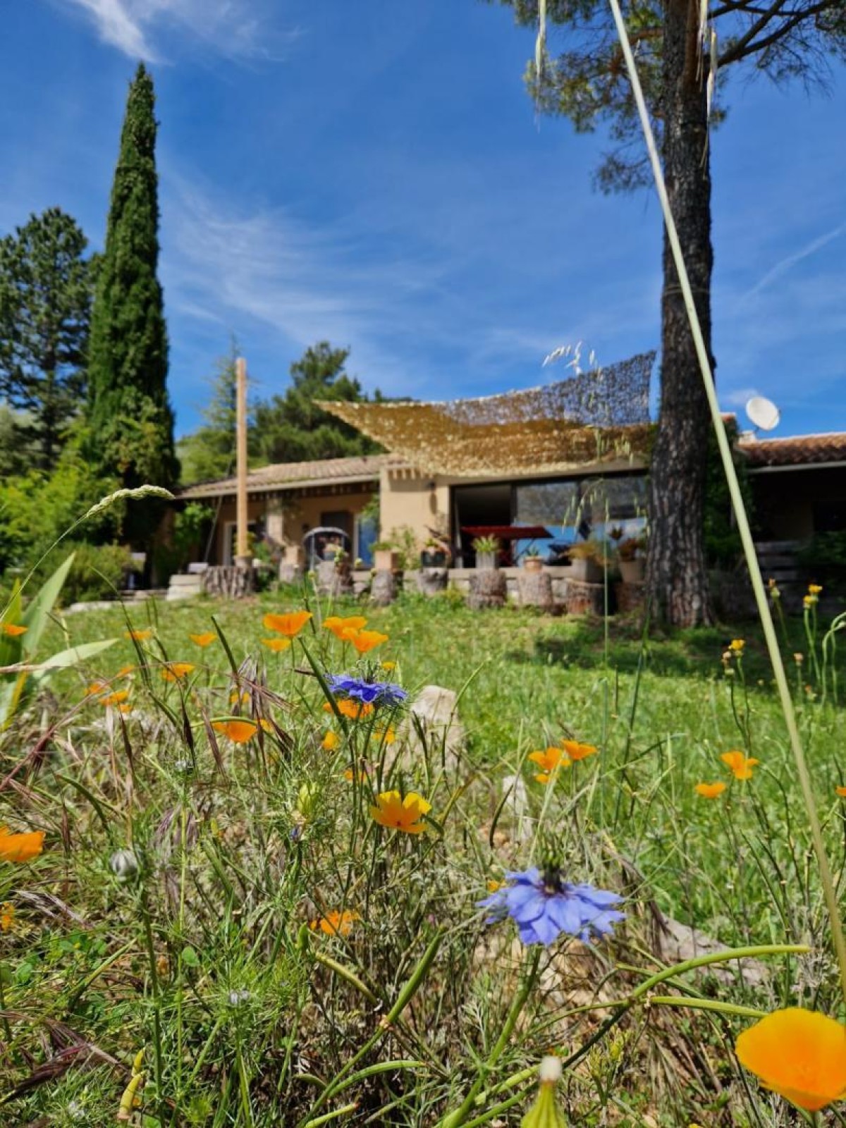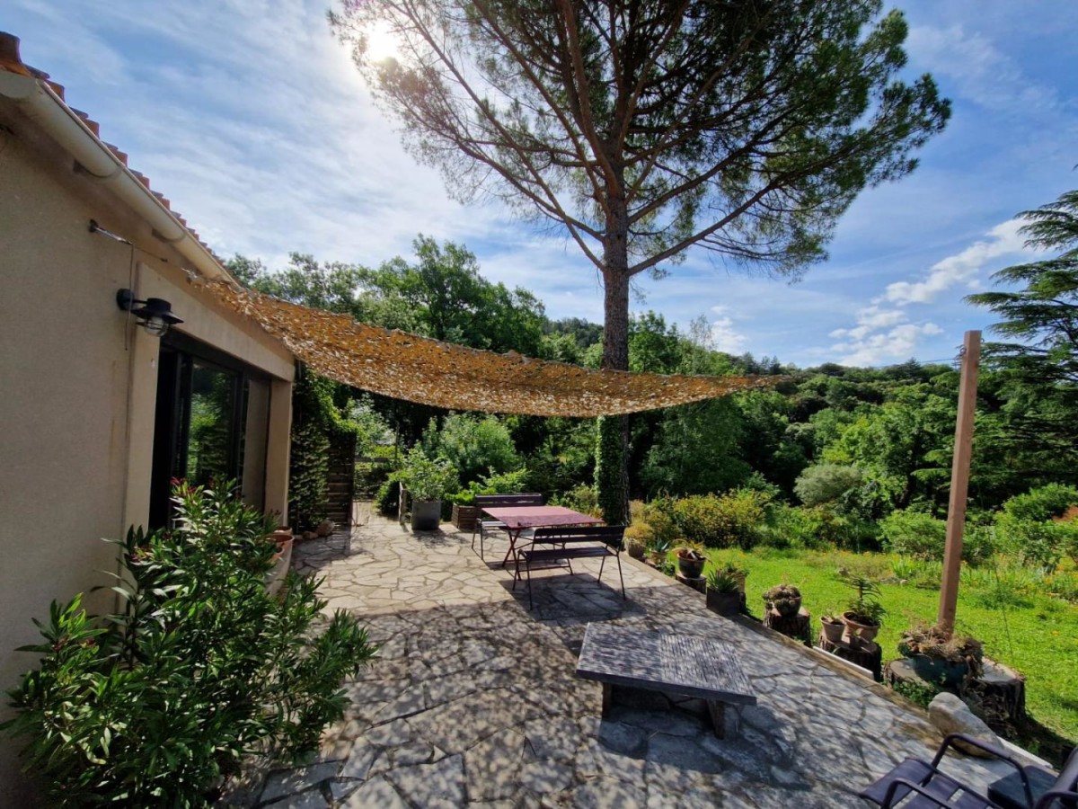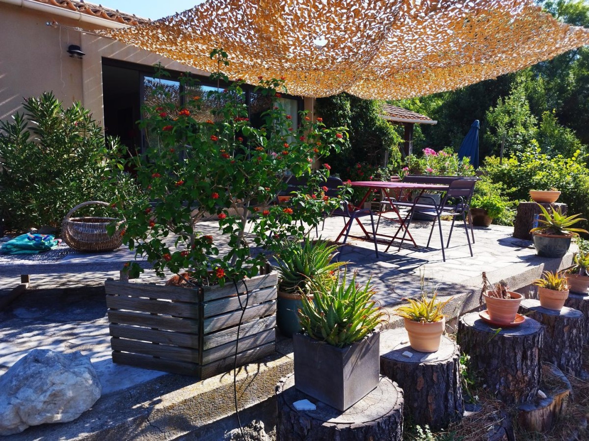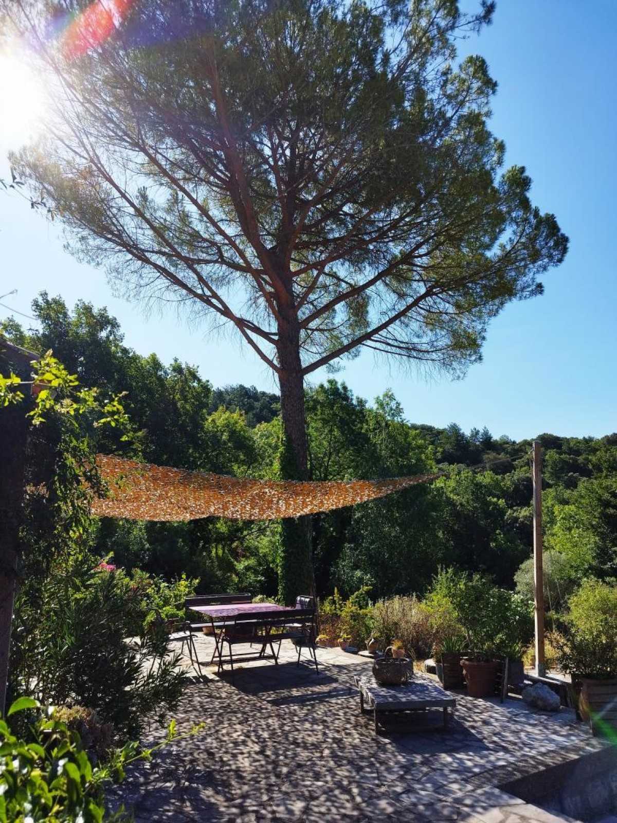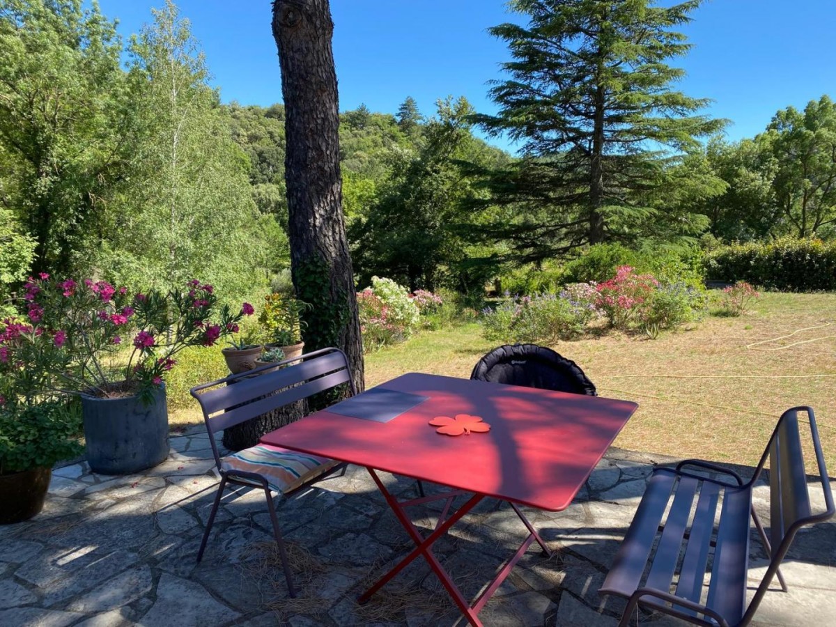 – Un grand extérieur : terrasse avec salon de jardin, jardin fleuri et arboré offrant une très belle vue sur les collines environnantes et un accès direct au ruisseau.