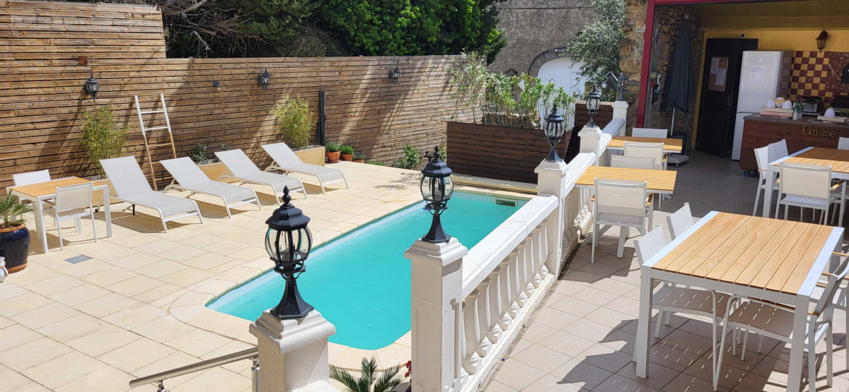Un espace restauration avec sa cuisine d’été surplombe la piscine et vous accueillera chaleureusement à tout moment de la journée, pour vos petits déjeuners, vos repas du soir ou encore un verre en terrasse.