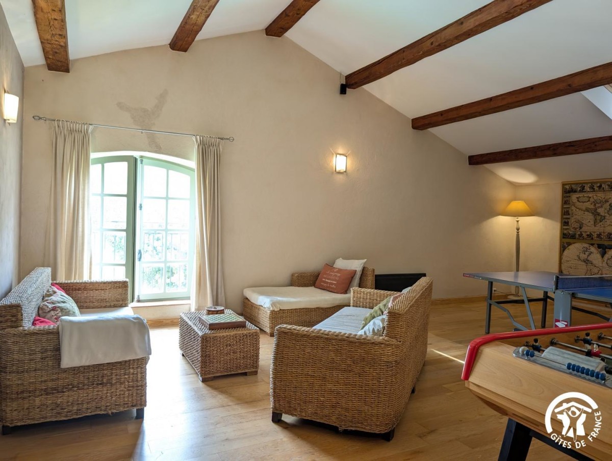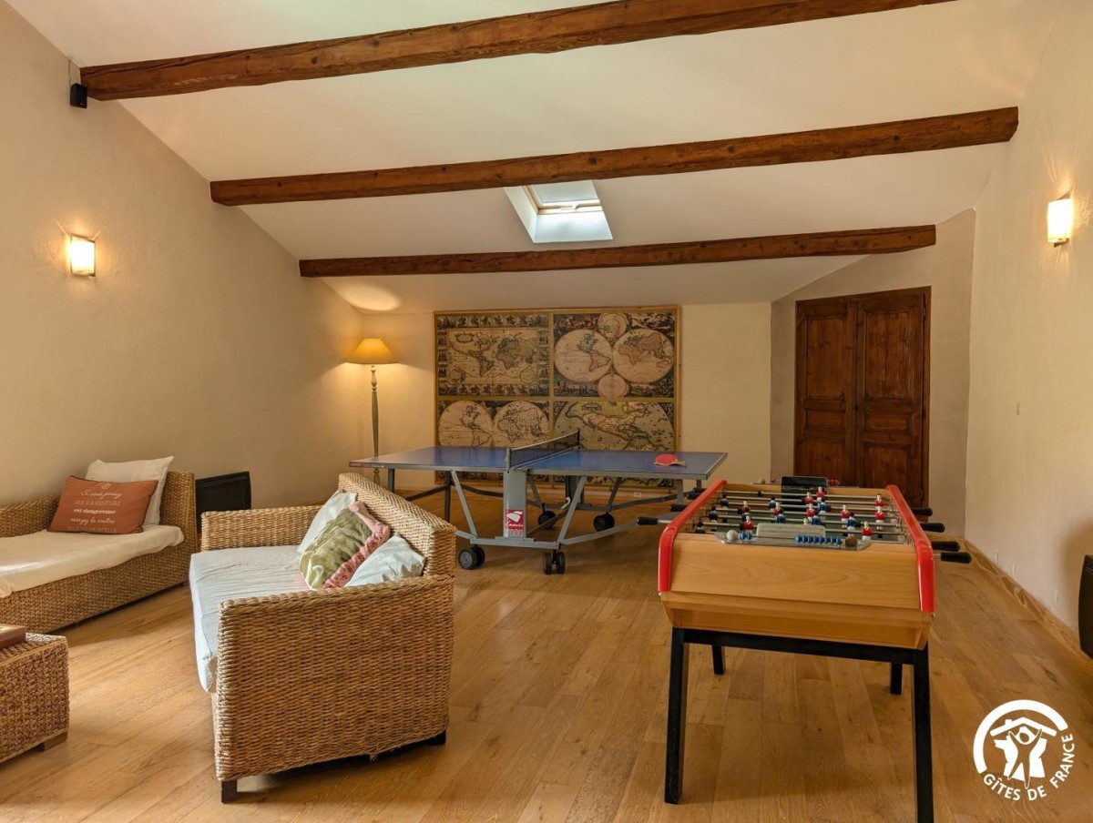 – Une grande pièce de vie de 50m2 avec espace salon, baby-foot, table de ping-pong (jeux de société)
