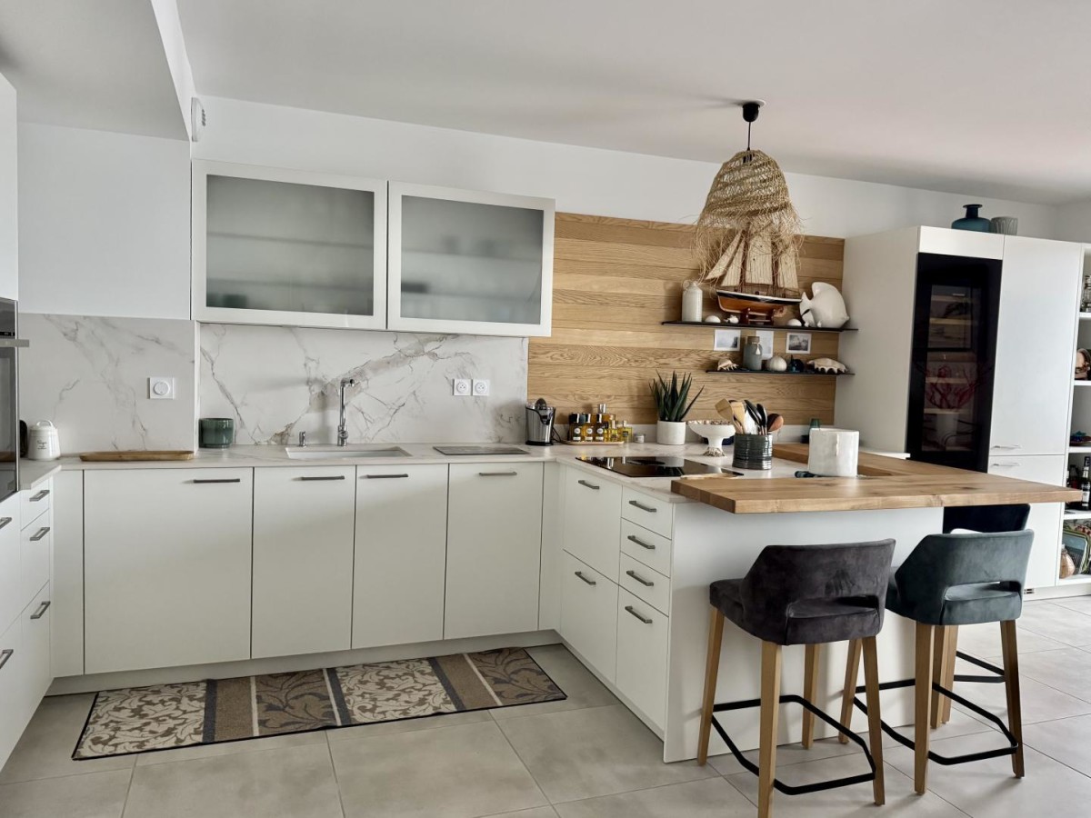 Points forts : une vue exceptionnelle depuis une grande terrasse, un appartement très bien situé et très bien équipé (avec des places de parking), le tout dans une ambiance moderne de bord de mer !