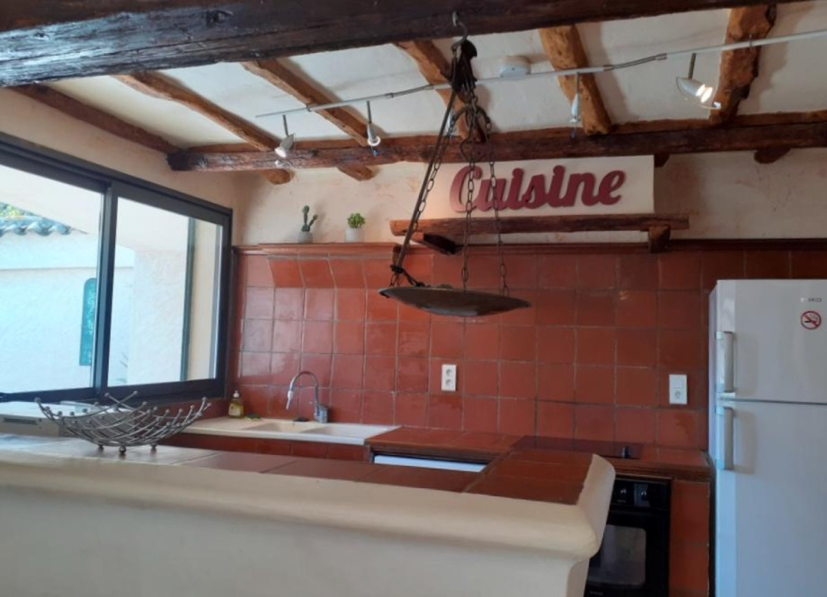 – Grand séjour avec coin cuisine et coin salon (cuisine tout équipée: four, micro-ondes, réfrigérateur avec compartiment congélateur, cafetière filtre + Senseo)