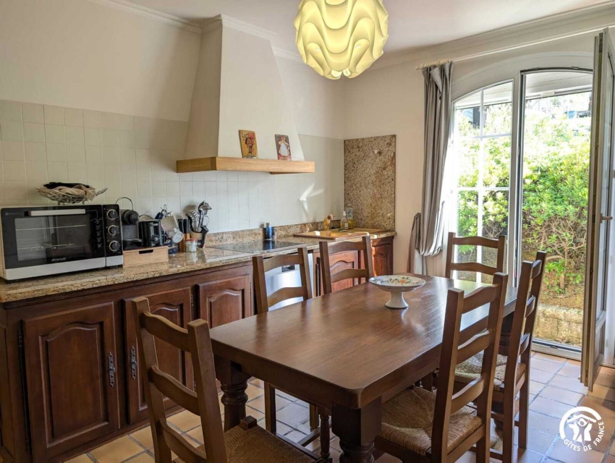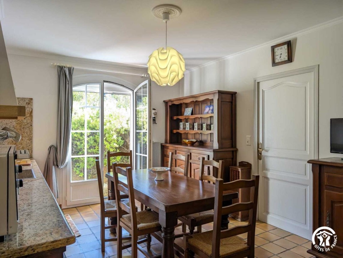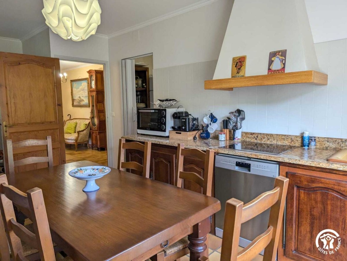 – Une cuisine tout équipée comprenant plaques de cuisson, frigo, lave-vaisselle, four, micro-onde, cafetière (filtre et dosette), bouilloire etc, une table à manger