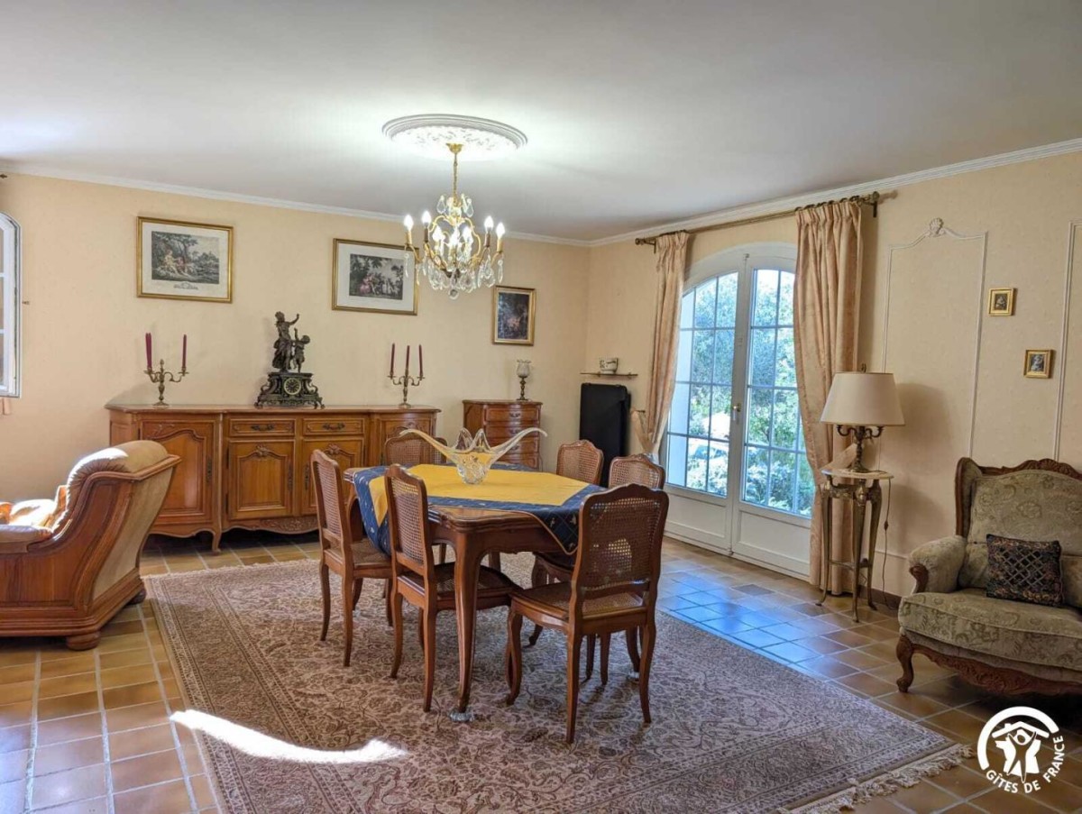 – Un salon/ salle à manger de 44m2 avec ouverture sur la terrasse, télévision, fauteuils et canapé, une table à manger