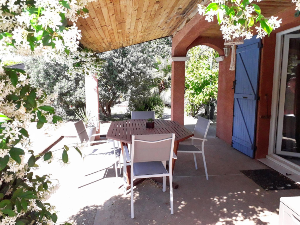 Profitez de l’extérieur avec sa terrasse couverte équipée d’un salon de jardin. Un gazebo pour 8 personnes est également à disposition.