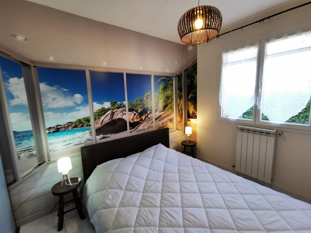 Vous retrouverez également deux chambres composées chacune d’un lit en 140X190cm, et une troisième chambre avec 2 lits 90X190cm, 1 salle d’eau avec lave-linge et des toilettes indépendantes.