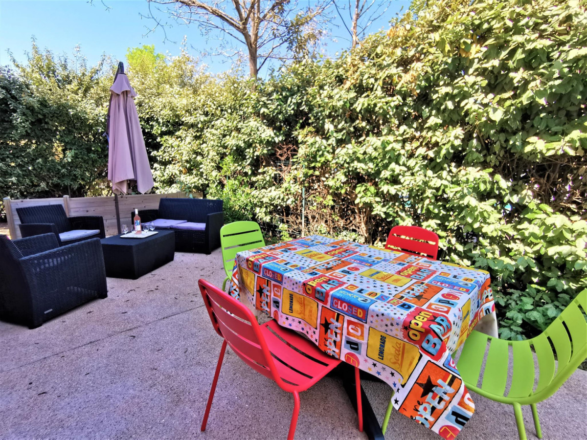 À l’extérieur, vous profitez d’une terrasse privative idéale pour les moments calmes ou les repas en plein air.