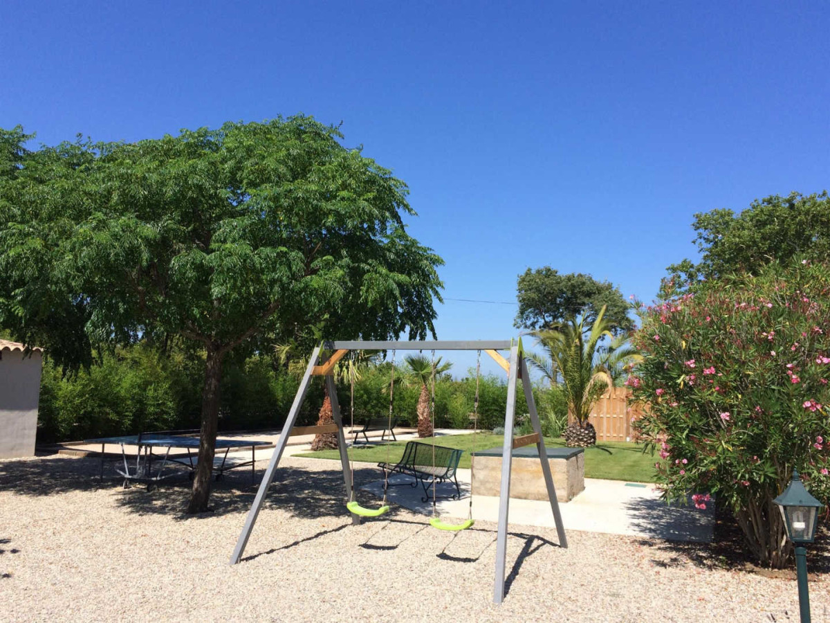 – Terrain, parc ombragés clos & communs. Jeux enfants, tennis de table, terrain de pétanque.