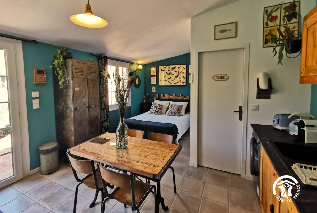 Le studio, climatisé, est équipé d’un coin nuit avec un grand lit double 140×200 confortable, d’un espace salon/salle à manger avec une cuisine équipée (four, micro-ondes, machine à café, lave-linge..) qui vous permettra de cuisiner en toute autonomie et d’une salle de bain avec douche, wc et sèche-serviettes.