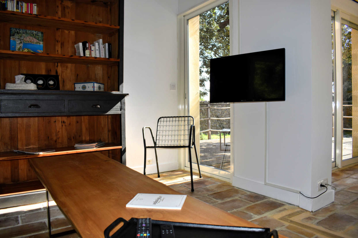 En descendant dans le jardin, vous profiterez de la piscine (chauffée de début juin à mi-septembre, 25° minimum), d’une salle de remise en forme avec possibilité de massages (en option), d’un espace de jeux pour enfants, d’un terrain de pétanque et d’une terrasse dans les arbres dans laquelle vous pourrez profiter du coucher du soleil ou y dormir (en option).