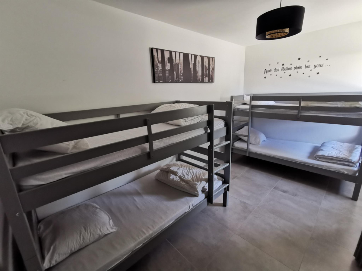 Le Cocon des palombes est composé d’une pièce de vie de 50m², de trois chambres (2 doubles avec lits 160*200 et une autre avec 2 lits superposés en 90*190) et deux salles d’eau avec WC. Il convient idéalement pour 8 personnes, vous pourrez donc profiter d’un agréable séjour en famille.