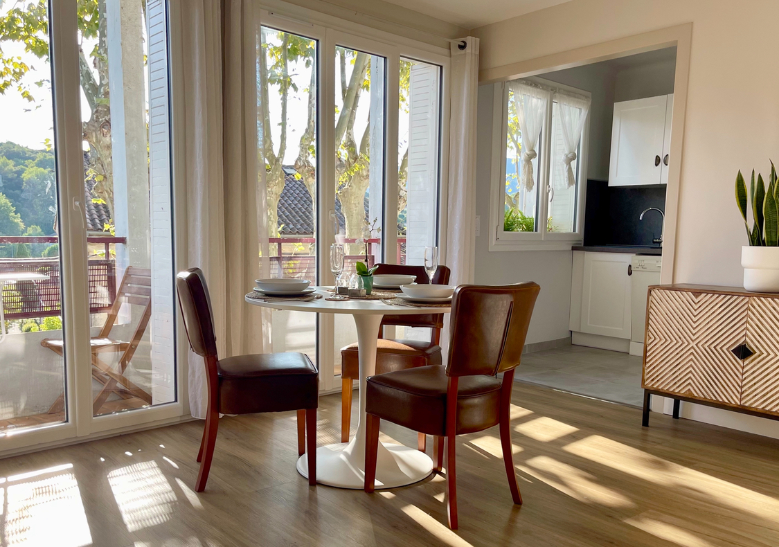 Bienvenue au « Cœur de Lamalou ». Cet appartement vous charmera par ses grandes baies vitrées qui vous permettront de savourer votre café du matin ou votre apéritif du soir sur votre balcon privé avec vue sur les collines. En plein centre-ville, vous avez accès à toutes les commodités : commerces, restaurants, cinéma, casino et bien plus encore. Envie d’une cure thermale ? Les thermes sont à seulement 4 minutes à pied ! La Voie verte est à proximité et nous disposons également d’un local à vélos pour vos équipements sportifs. Les nouveaux propriétaires ont choisi un mobilier confortable pour vous assurer un séjour relaxant. L’appartement a été classé 3 étoiles en septembre 2025. À ne pas manquer !