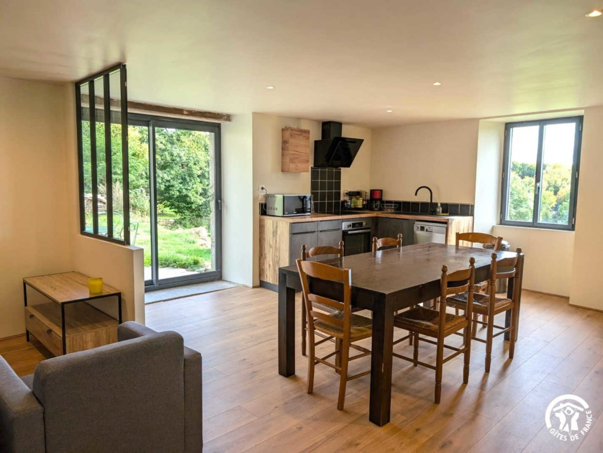 Le gîte de 65m2 se situe au rez-de-chaussée d’une maison en pierre. Il se compose ainsi :