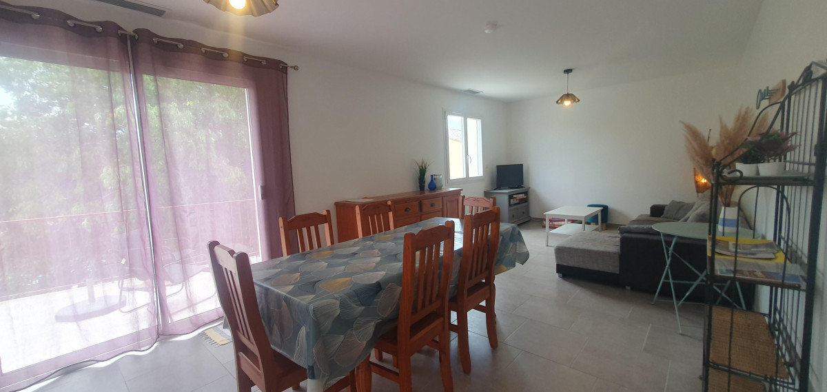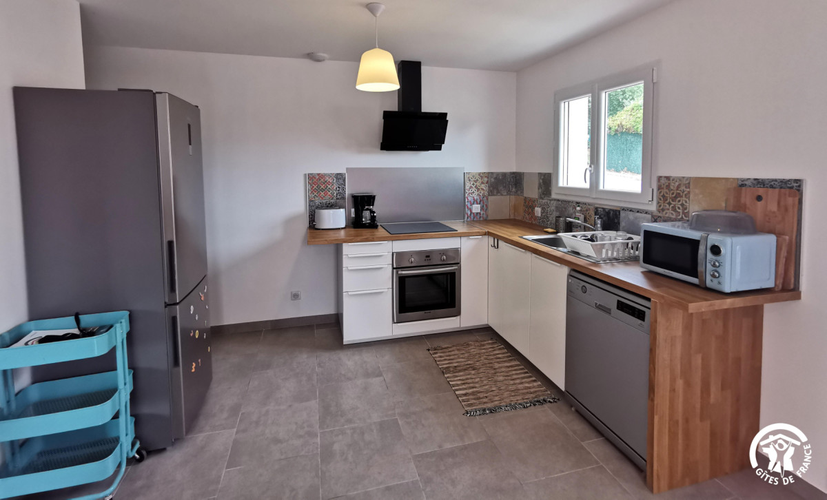 D’une capacité de 6 couchages, vous y retrouverez un grand séjour (canapé convertible 2 personnes) avec un accès direct sur la première terrasse (ainsi qu’une télévision dans le salon), une cuisine ouverte toute équipée (four, micro-ondes, lave-vaisselle, réfrigérateur, congélateur, machine à café… ainsi que tout le nécessaire de cuisine).