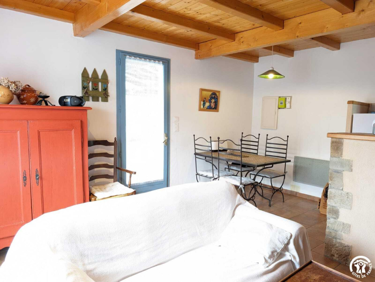 Dans le séjour, vous trouverez un espace repas avec table et chaises, mais aussi un coin salon où vous reposer devant la cheminée avec un canapé, une table basse, une télévision (avec lecteur DVD et DVD sur demande aux propriétaires), une radio/lecteur CD. Des jeux de société sont aussi à disposition pour une soirée jeux en famille. (Vous pouvez également en demander d’autres aux propriétaires qui vivent à proximité).