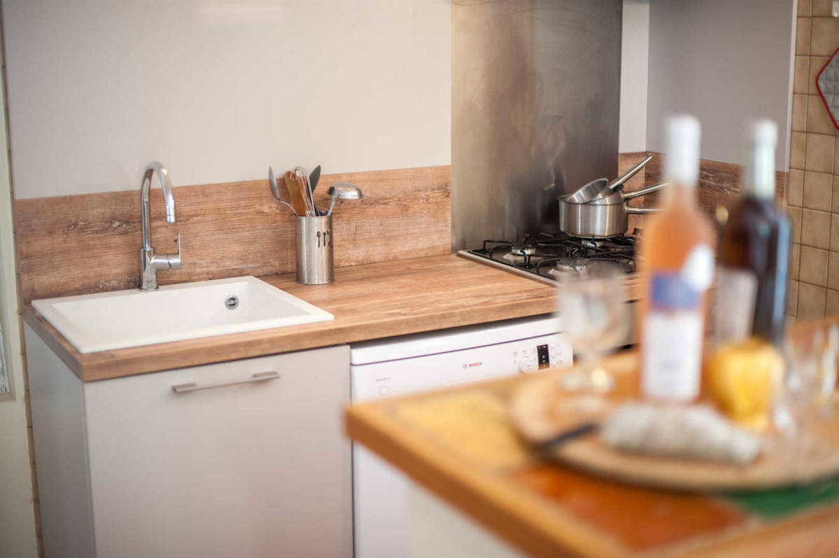 Le Jardin de Marie-Louise (50 m²): Rez-de-chaussée : salle de séjour/espace détente (canapé gigogne 2 personnes), coin-cuisine. 1 chambre (1 lit 2 personnes, 1 lit bébé), salle d’eau/wc, chauffage électrique, TV, buanderie commune (congélateur). Jardin privatif clos, salon de jardin, barbecue, cour commune & parking, possibilité garage. draps et linge de toilette fournis. Ouvert toute l’année. Forfait ménage 40 €.