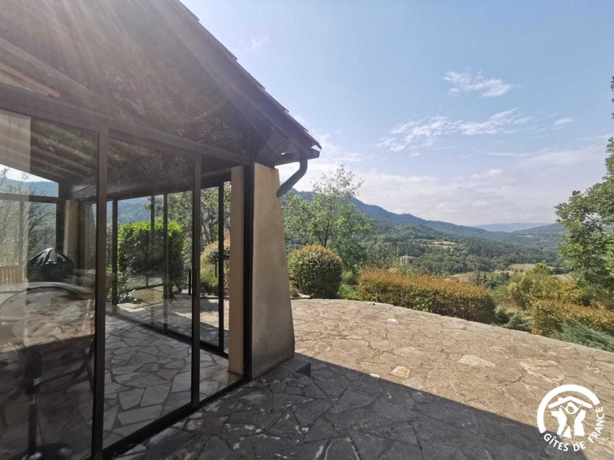 À l’extérieur, vous profitez d’un jardin privé verdoyant avec salon de jardin, d’une véranda équipée d’une grande table à manger offrant une vue superbe sur la vallée, et d’une piscine privative (7,60 x 4 m, profondeur 1,50 m), ouverte du 1er avril au 31 octobre. Un parking privatif gratuit permet de stationner plusieurs véhicules sur la propriété. Une buanderie avec lave-linge est également à disposition.