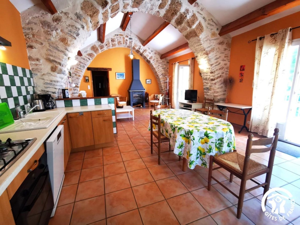 Le gîte, entièrement indépendant, est aménagé dans un ancien bâtiment réhabilité avec soin, conservant le charme de la pierre et du traditionnel tout en offrant un confort moderne. De plain-pied, il propose une cuisine ouverte bien équipée (four, micro-ondes, lave-vaisselle, réfrigérateur-congélateur, bouilloire, cafetière filtre), une salle à manger avec table familiale, un salon chaleureux avec canapé, télévision, bureau et table basse. La salle d’eau dispose d’une douche, d’une vasque avec miroir et d’un lave-linge. Les WC sont séparés.