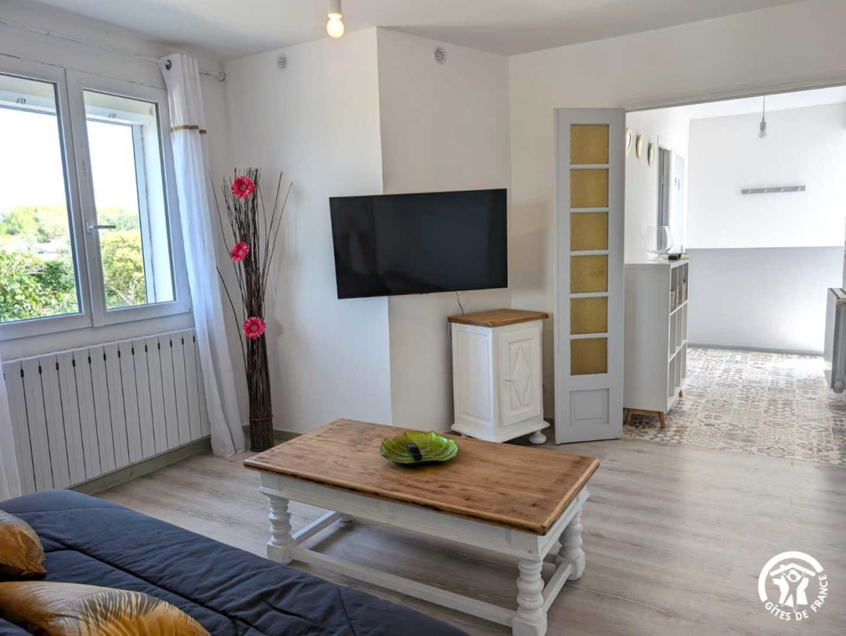 – Séjour avec canapé et TV