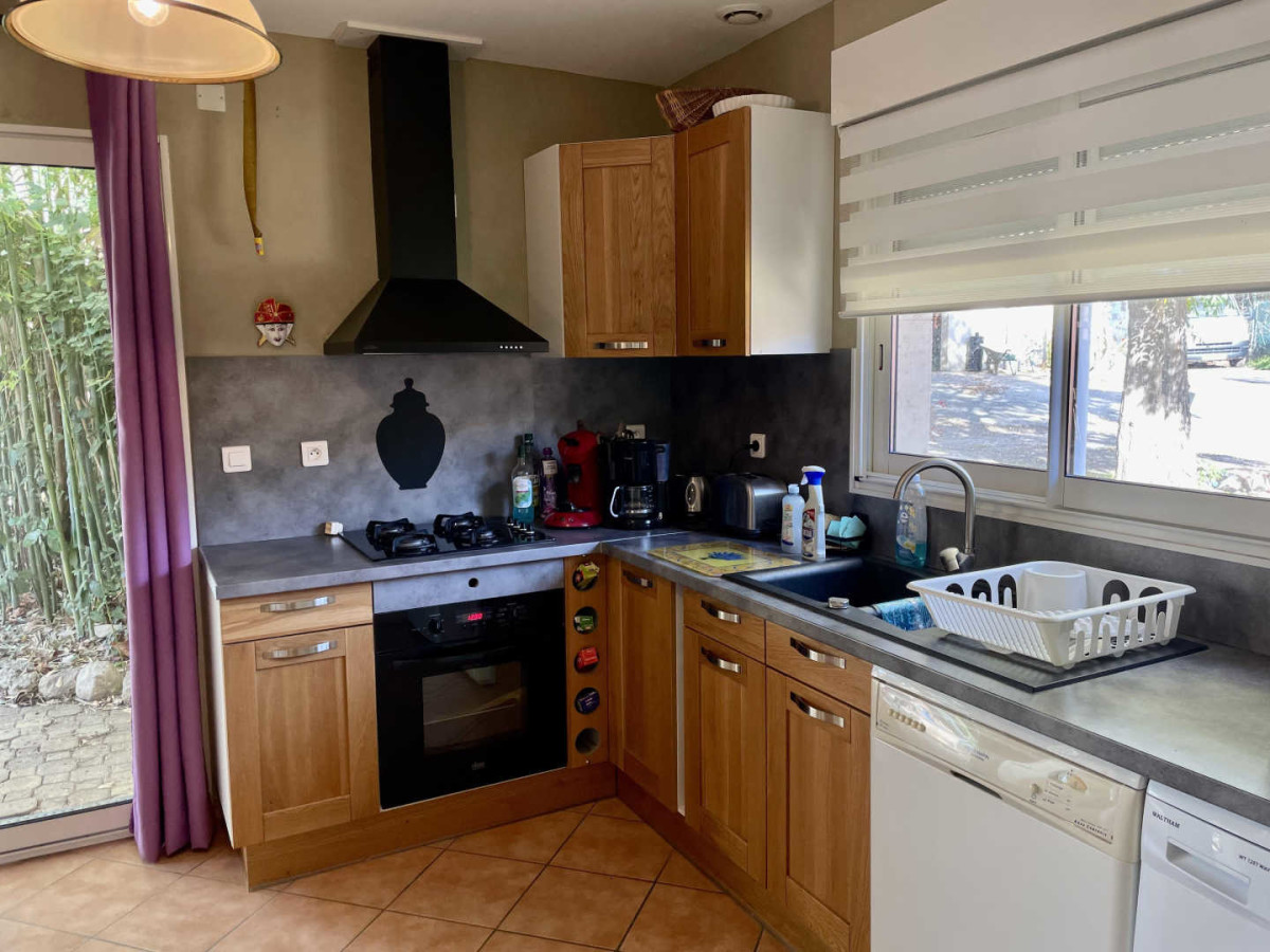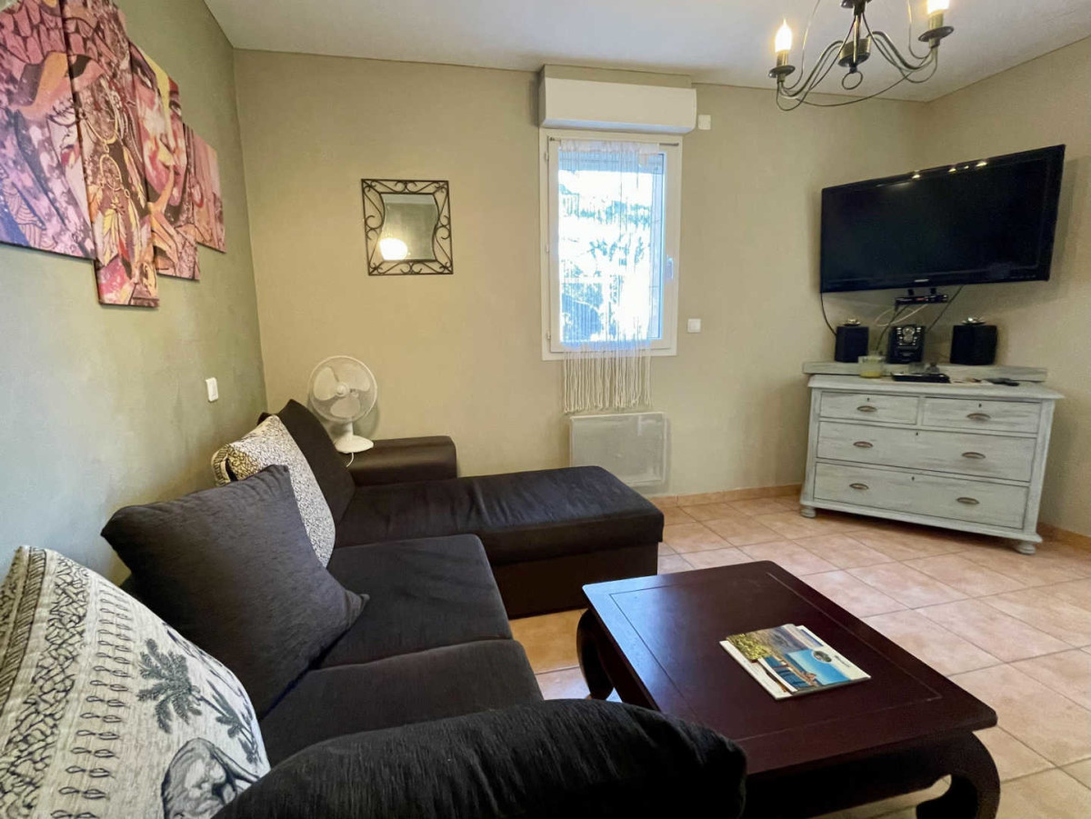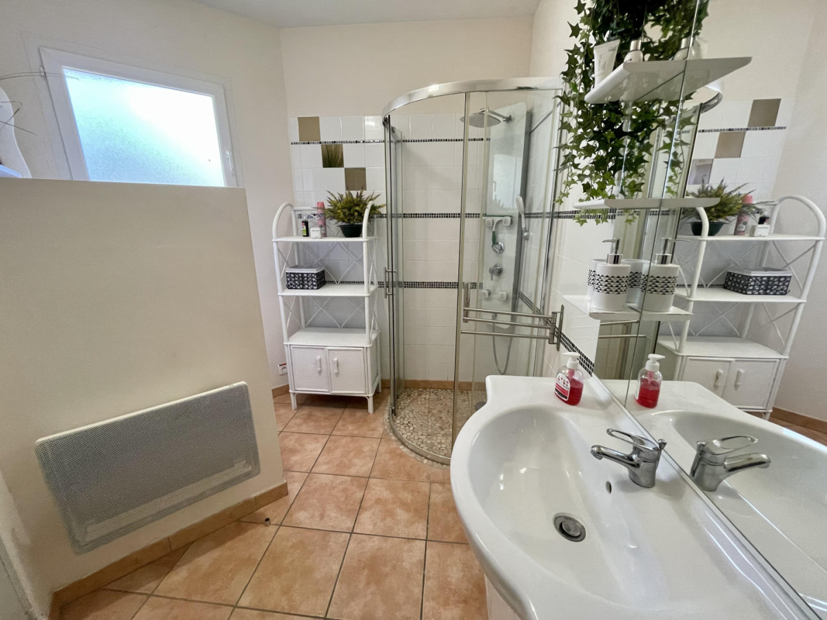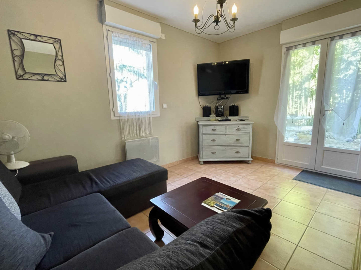 Vous pourrez profiter d’un jardin commun avec les propriétaires d’environ 500 m², avec piscine à partager (8×4) chauffée de juin à septembre, mais aussi d’une terrasse privative clôturée avec salon de jardin et plancha.