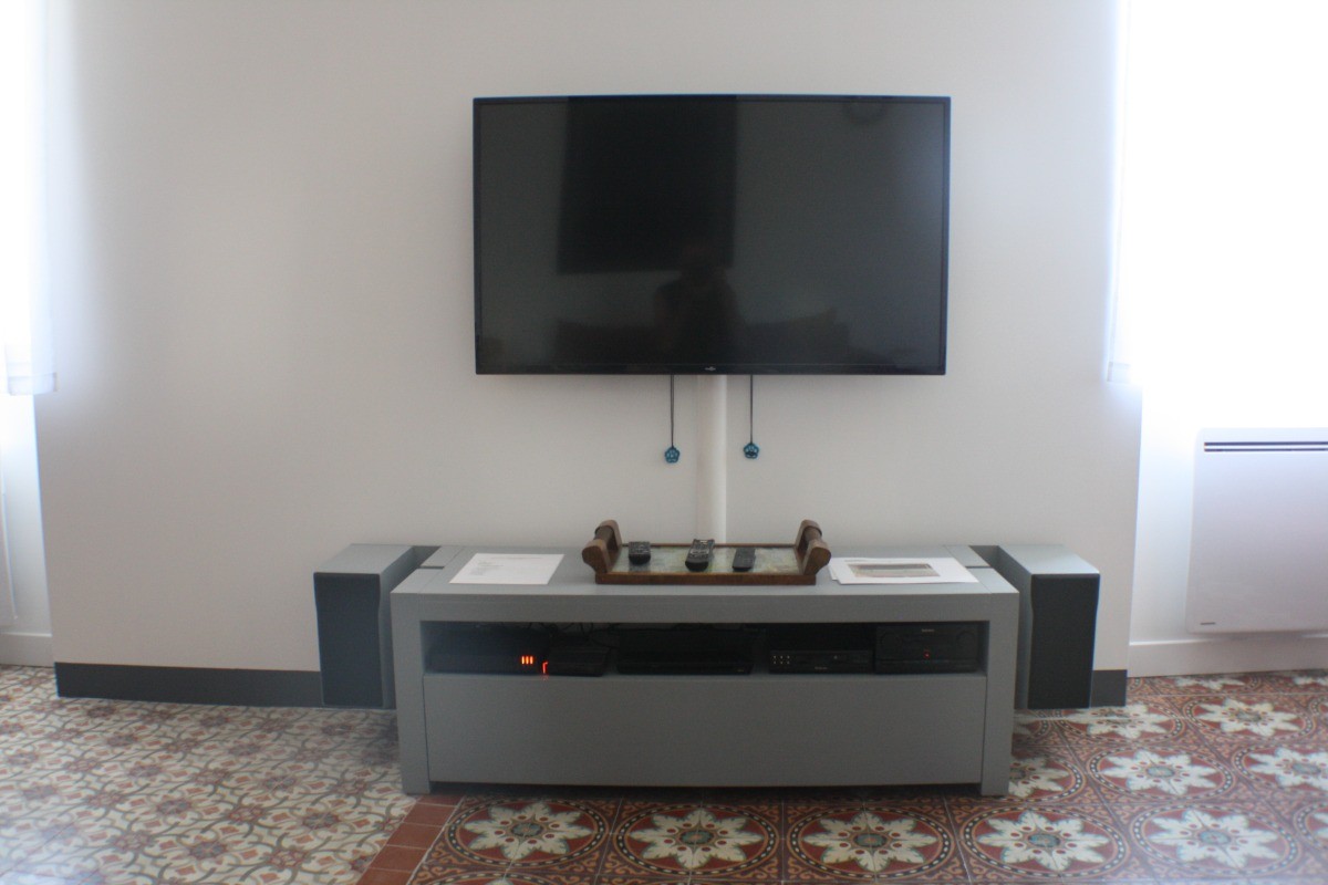 En franchissant le seuil, vous serez accueilli par un hall spacieux menant au premier étage. Là, un salon cosy vous attend, équipé d’une télévision grand écran, d’un home cinéma, d’un lecteur DVD, ainsi que de jeux de société et de livres pour des moments de détente en famille ou entre amis.