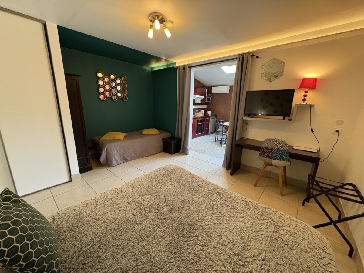 – Une chambre comprenant un lit double en 160×200 avec TV.