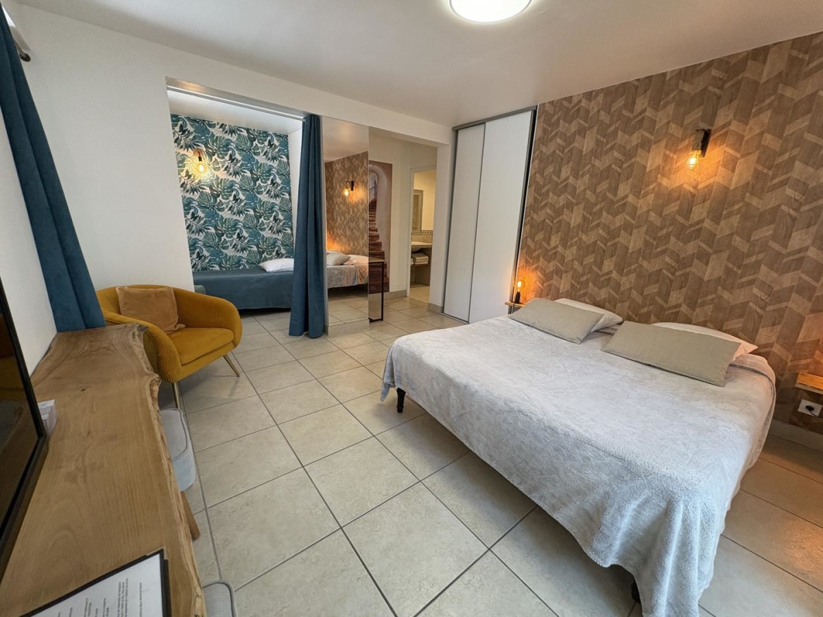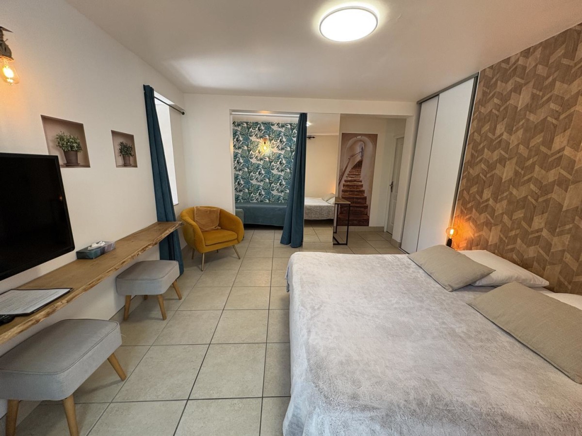 – Une 1ère chambre comprenant un lit double en 160×200 avec TV.