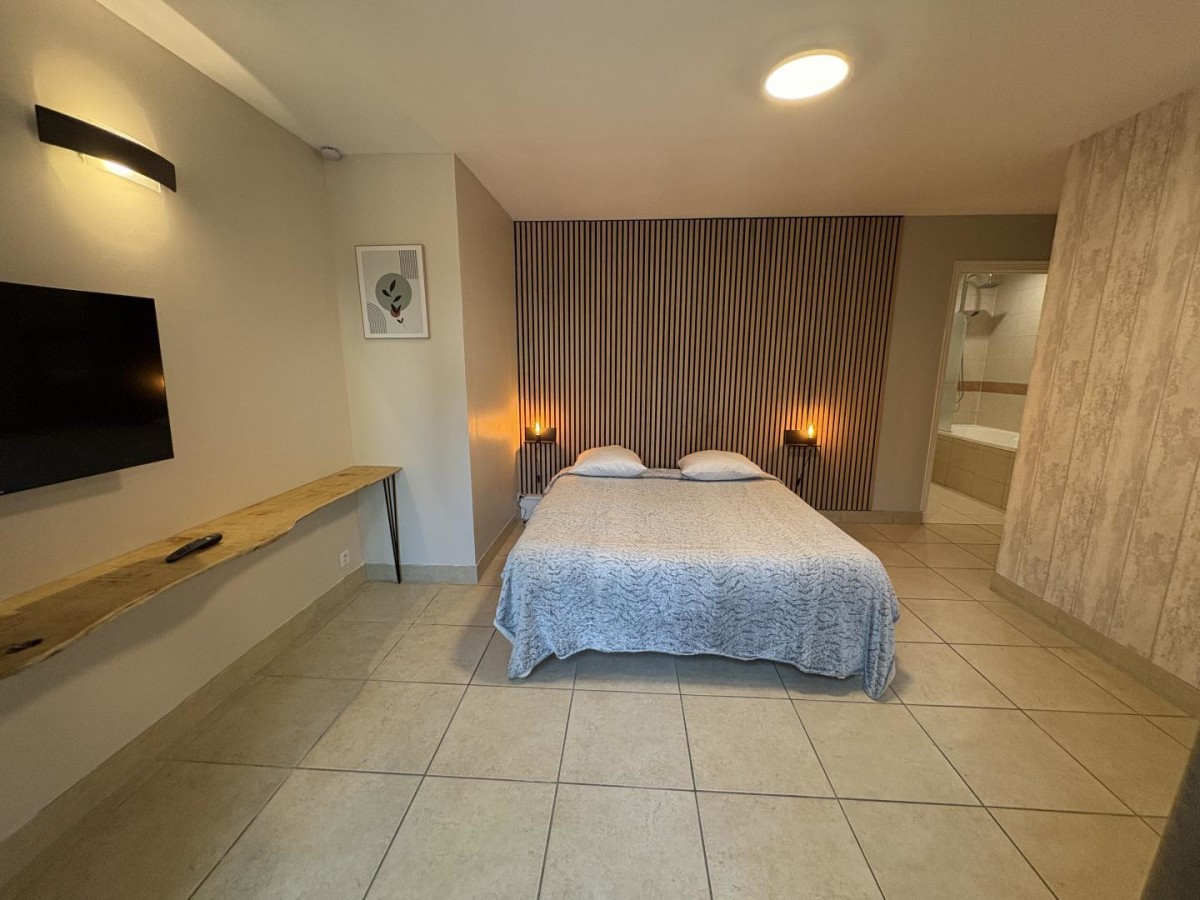 – Une 1ère chambre comprenant un lit double en 160×200 avec TV.