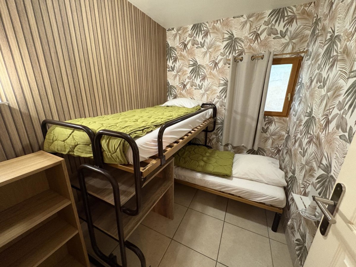 – Une seconde chambre avec deux lits superposés en 90×200.