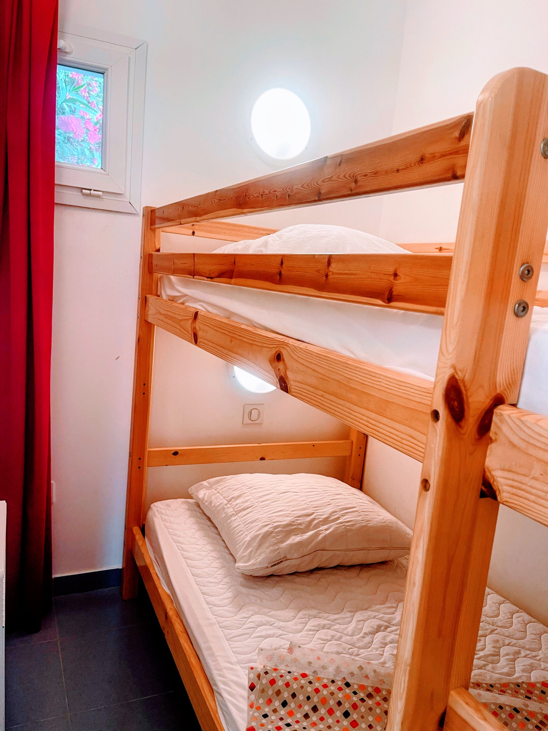 Mini villa pour 4 personnes avec 1 chambre + cabine avec lits superposés , Wifi, parking privatif .