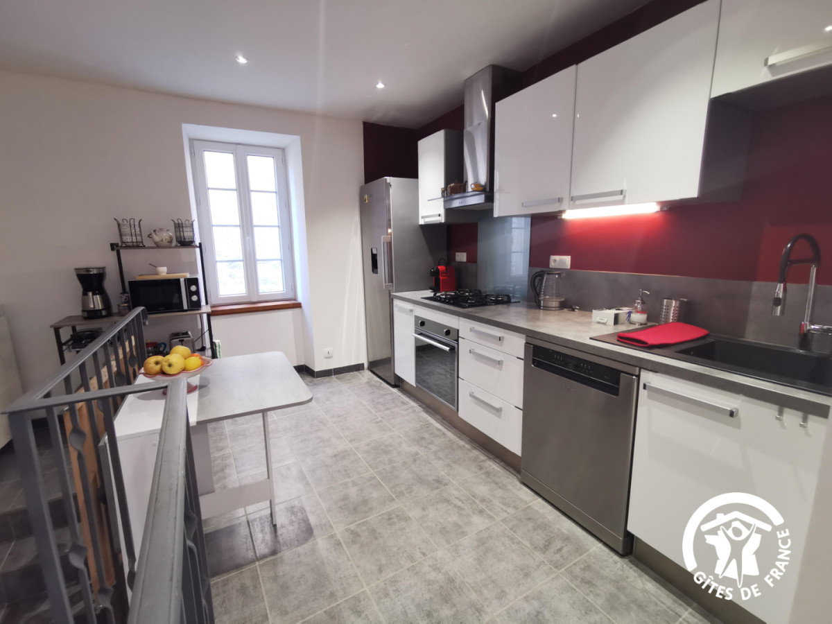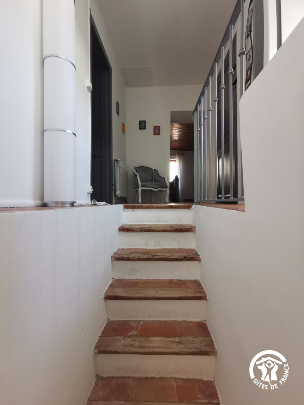 Une chambre se trouve au premier étage (2 lits 140×190) avec la salle de bain et les deux autres sont à l’étage (une avec un lit 160×190 et la seconde avec lit 120×190).