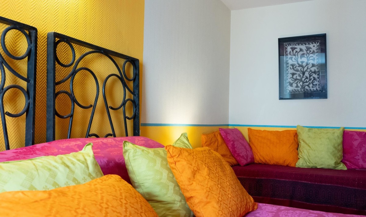 A une quinzaine de kilomètres, pour une petite pause détente, rien de tel qu’une balade le long des Gorges de la Dourbie, où l’eau cristalline serpente à travers les paysages sauvages, un lieu idéal pour se baigner ou pique-niquer au bord de la rivière. – La chambre Jaipur est inspirée de nombreux voyages en Indes. Décorée avec goût cette vaste chambre permet d’accueillir jusqu’à 3 personnes. C’est un espace de repos tranquille avec une vue sur le château du Roc Castel. La chambre possède un lit double en 160×200 cm ainsi qu’un lit simple 80×200 cm (ou trois lits simples 80x200cm), et une salle d’eau privative avec toilettes. Accès à un espace commun cosy de détente proposant café-thé à discrétion avec un petit frigo. Possibilité de restauration au rez-de-chaussée midi et soir.