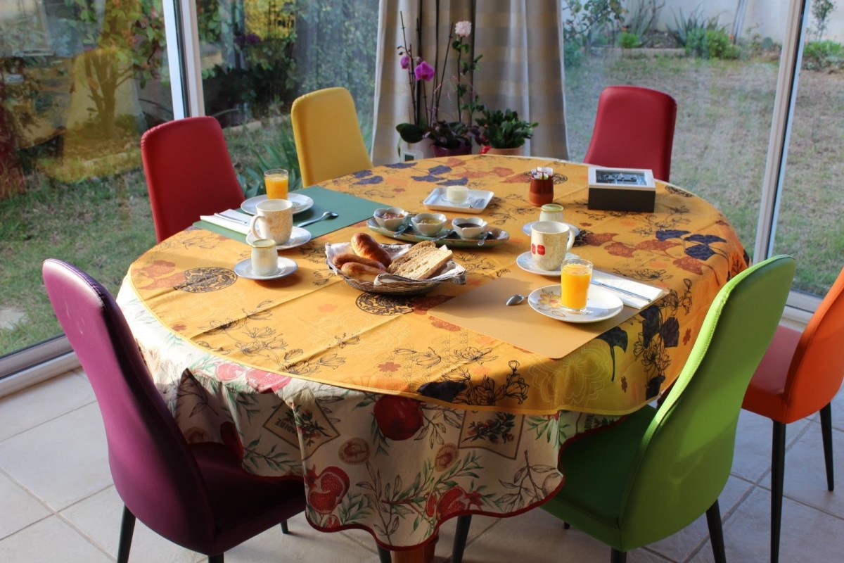 Vous pourrez profiter sur la terrasse extérieure (abritée par une pergola bioclimatique munie de stores) ou dans la salle à manger à l’intérieur d’un bon petit-déjeuner continental préparé avec soin par vos hôtes : plusieurs sortes de pains, jus d’orange fait maison, café, thé, chocolat chaud, confitures maison, yaourts…