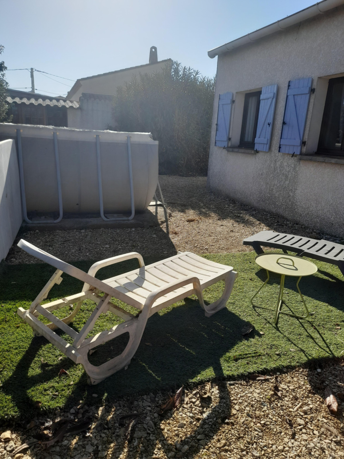 Un bel extérieur privatif avec un espace détente devant le gîte avec salon de jardin et balancelle, ainsi qu’un espace extérieur derrière le gîte avec bains de soleil et piscine privative hors-sol (6x3x1,2 de profondeur).