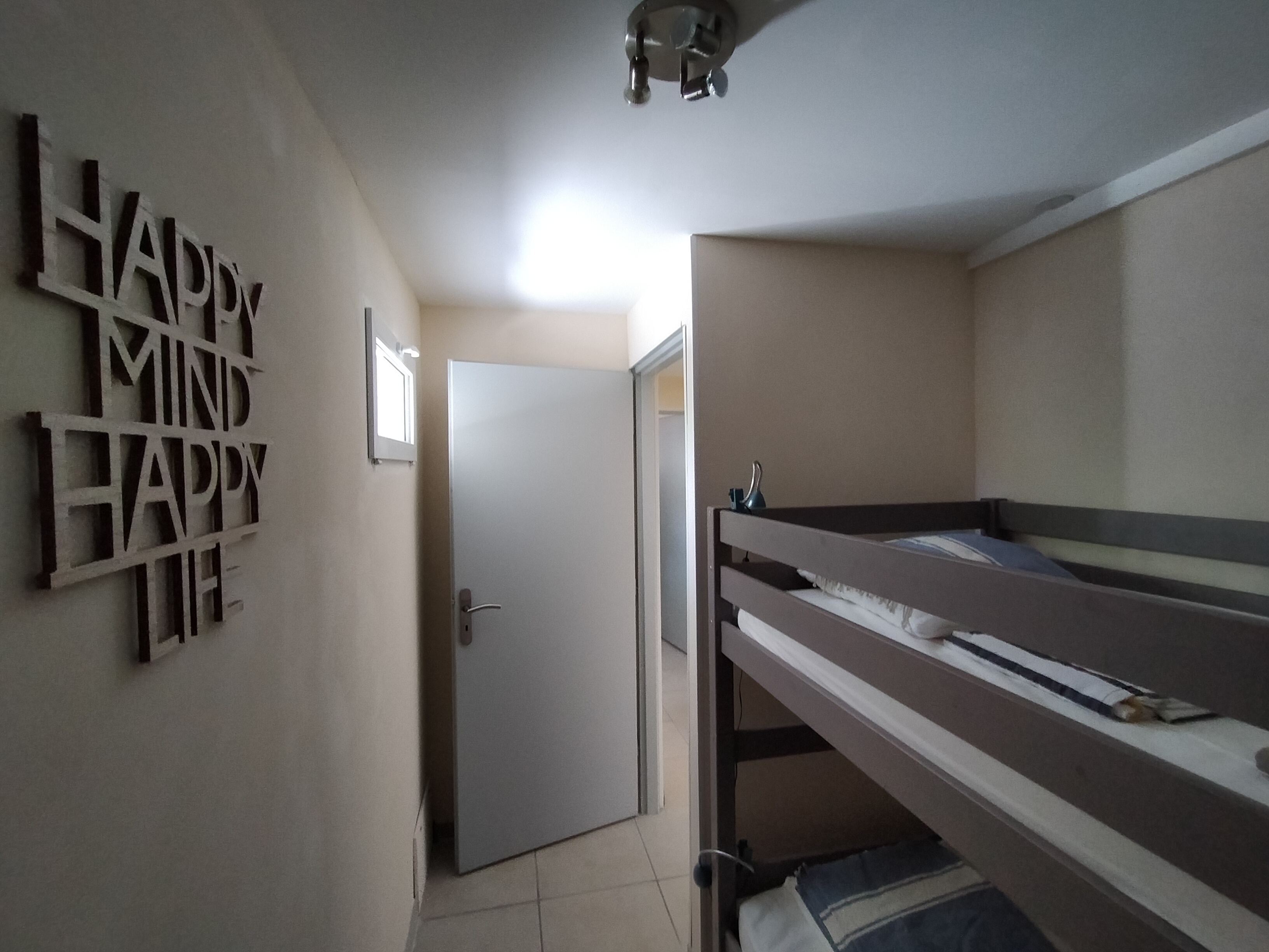– 2 chambres avec lit en 140 (12 m² et 9 m²) et 1 chambre « cabine » (5 m²) avec 2 lits superposés en 90