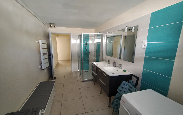 – 1 salle d’eau de 9 m² avec douche de plain-pied et double vasque