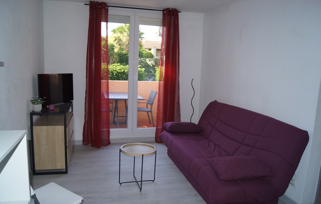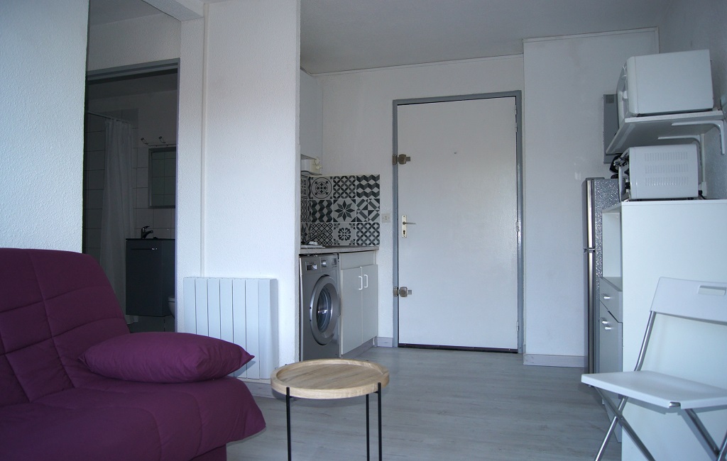 Meublé T2 cosy avec terrasse spacieuse dans une résidence sécurisée avec piscine, au 2ème et dernier étage sans vis-à-vis direct et avec vue agréable.