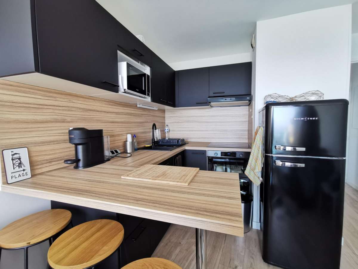 Au premier étage de la résidence Les Marines, l’appartement de 31m²,à la décoration moderne, vous accueille avec une entrée qui dessert toutes les pièces de l’appartement !