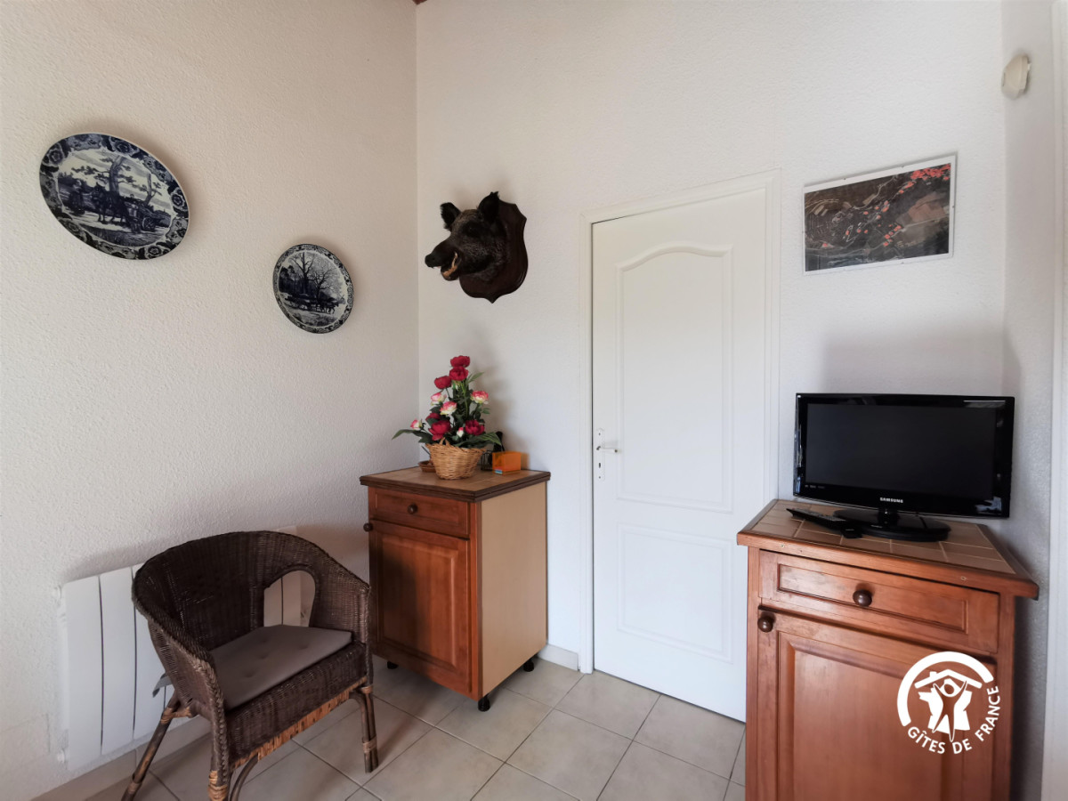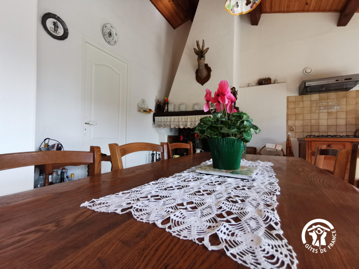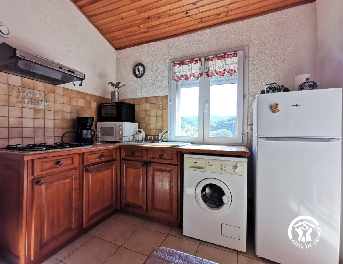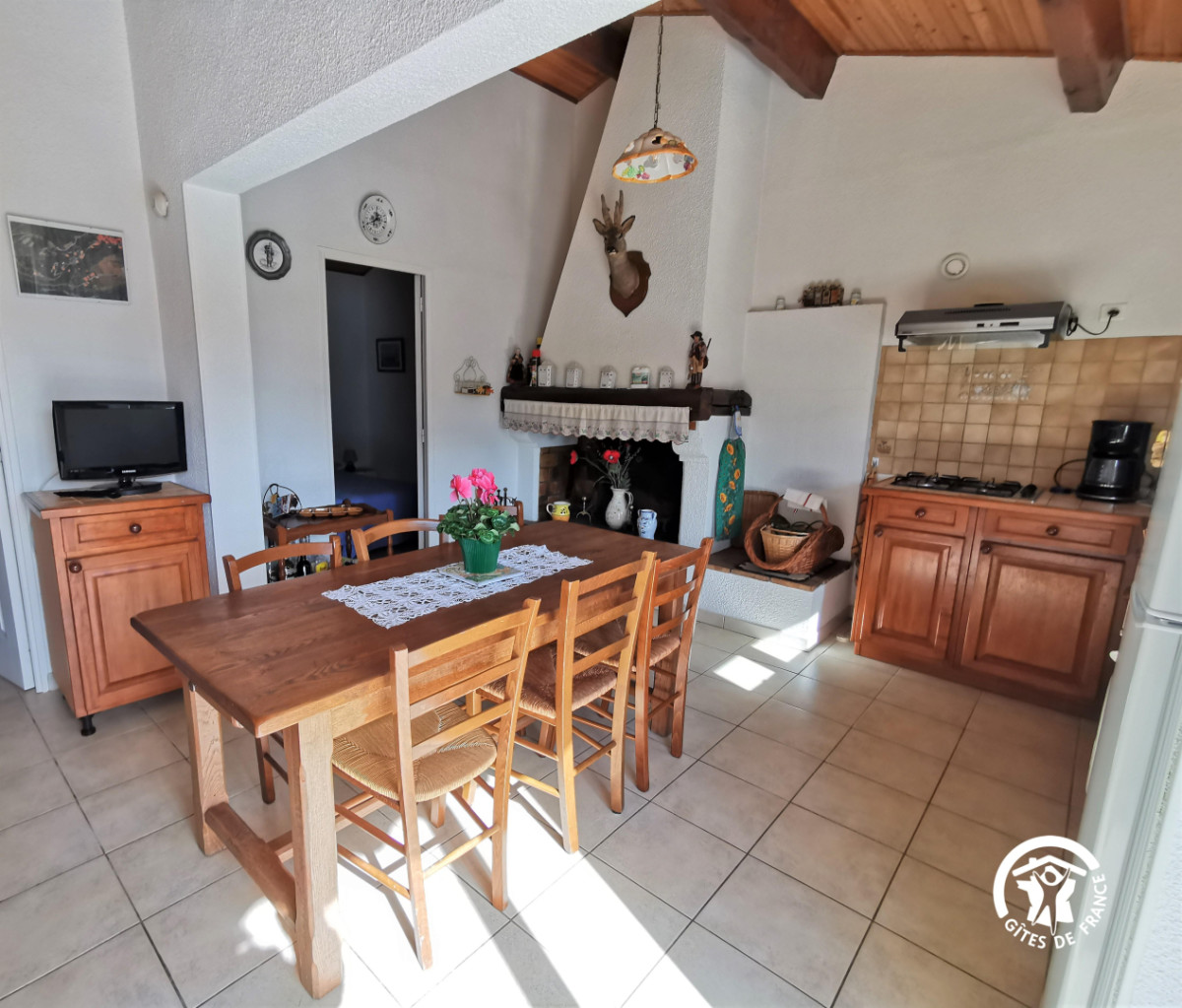 Au 1er étage, dans ce gîte de plain-pied, vous retrouvez un coin cuisine/séjour avec lave-vaisselle.
