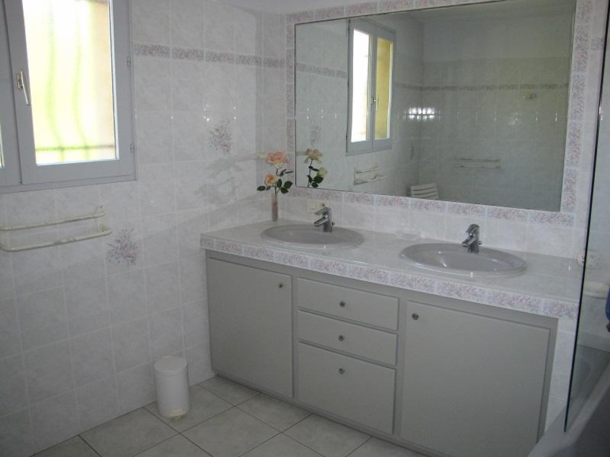 – Salle de bain équipée de double vasques, d’une baignoire et d’une douche.