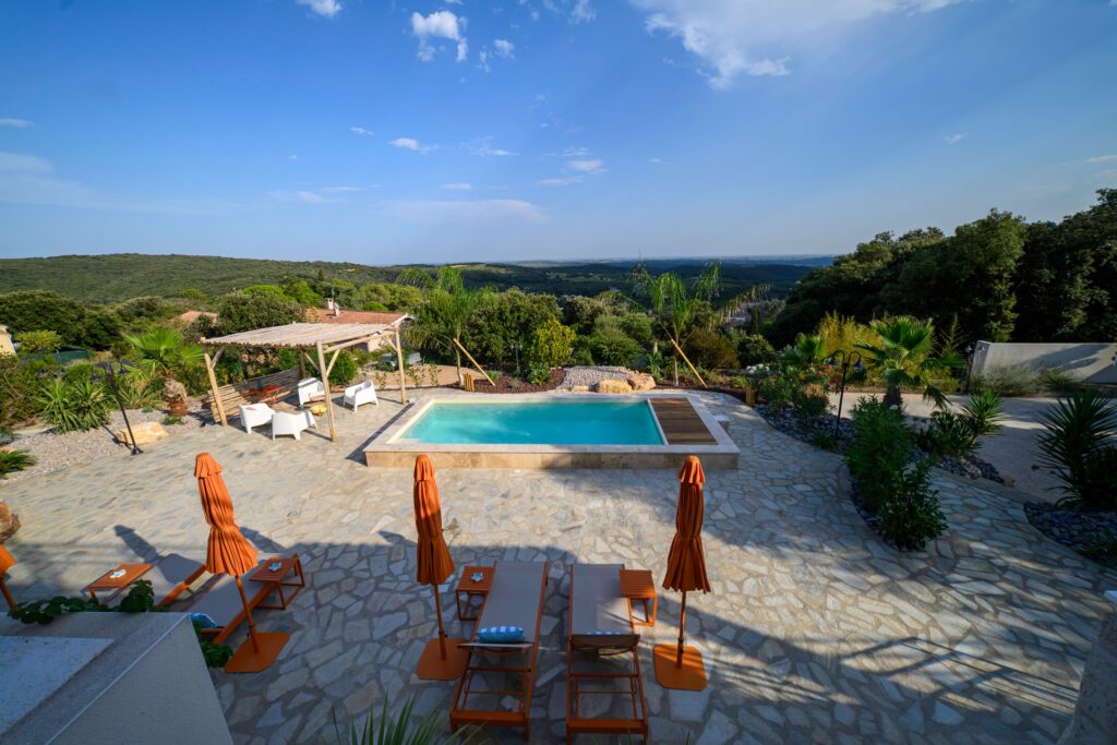 Le charme du calme et de la nature. Niché au cœur d’un environnement paisible, notre gite offre une vue spectaculaire sur la plaine du Languedoc, invitant à la détente et à la contemplation.